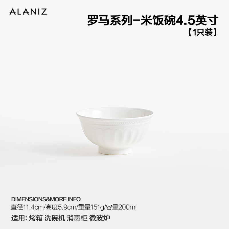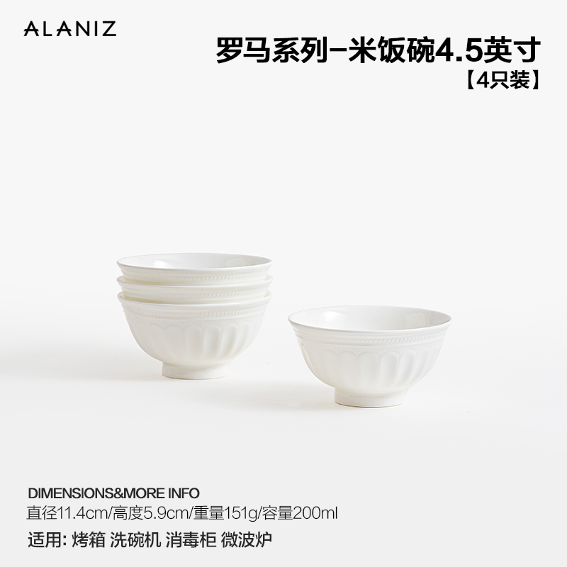 Alaniz римская рельефная миска для риса, бытовые миски, французская посуда, легкая роскошная белая фарфоровая посуда, личная миска для риса