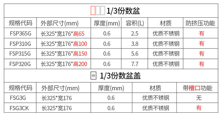 | Цвет: | 1/1*25 (длина 530*Ширина 325*Высота 25 мм), 1/1*40 (длина 530*Ширина 325*Высота 40 мм), 1/1*65 (длина 530*Ширина 325*Высота 65 мм), 1/1*100 (длина 530*Ширина 325*Высота 100 мм), 1/1*150 (длина 530*Ширина 325*Высота 150 мм), 1/1*200 (530*Ширина 325*Высота 200 мм), 1/2*25 (325*Ширина 265*Высота 25 мм), 1/2*40 (325*Ширина 265*Высота 40 мм), 1/2*65 (325*Ширина 265*Высота 65 мм), 1/2*100 (325*Ширина 265*Высота 100 мм), 1/2*150 (325*Ширина 265*Высота 150 мм), 1/2*200 (325*Ширина 265*Высота 200 мм), 1/3*65 (325*Ширина 176*Высота 65 мм), 1/3*100 (325*Ширина 176*Высота 100 мм), 1/3*150 (325*Ширина 176*Высота 150 мм), 1/4*65 (длинная 265*Ширина 162*Высота 65 мм), 1/4*100 (длина 265*Ширина 162*Высота 100 мм), 1/4*150 (длинная 265*Ширина 162*Высота 150 мм), 1/6*65 (длина 176*Ширина 162*Высота 65 мм), 1/6*100 (длина 176*Ширина 162*Высота 100 мм), 1/6*150 (длина 176*Ширина 162*Высота 150 мм), 1/9*65 (длина 176*Ширина 108*Высота 65 мм), 1/9*100 (длина 176*Ширина 108*Высота 100 мм), 1/9*150 (длина 176*Ширина 108*Высота 150 мм) |