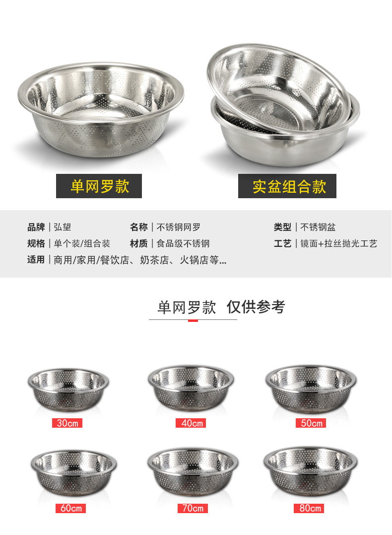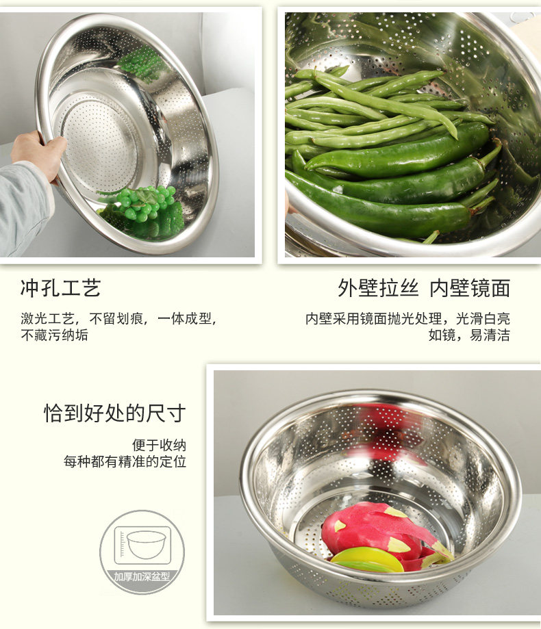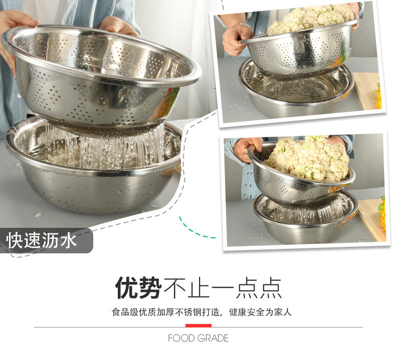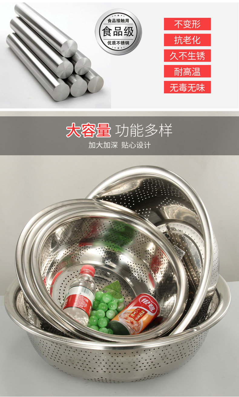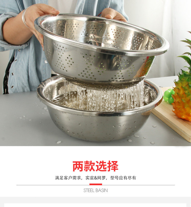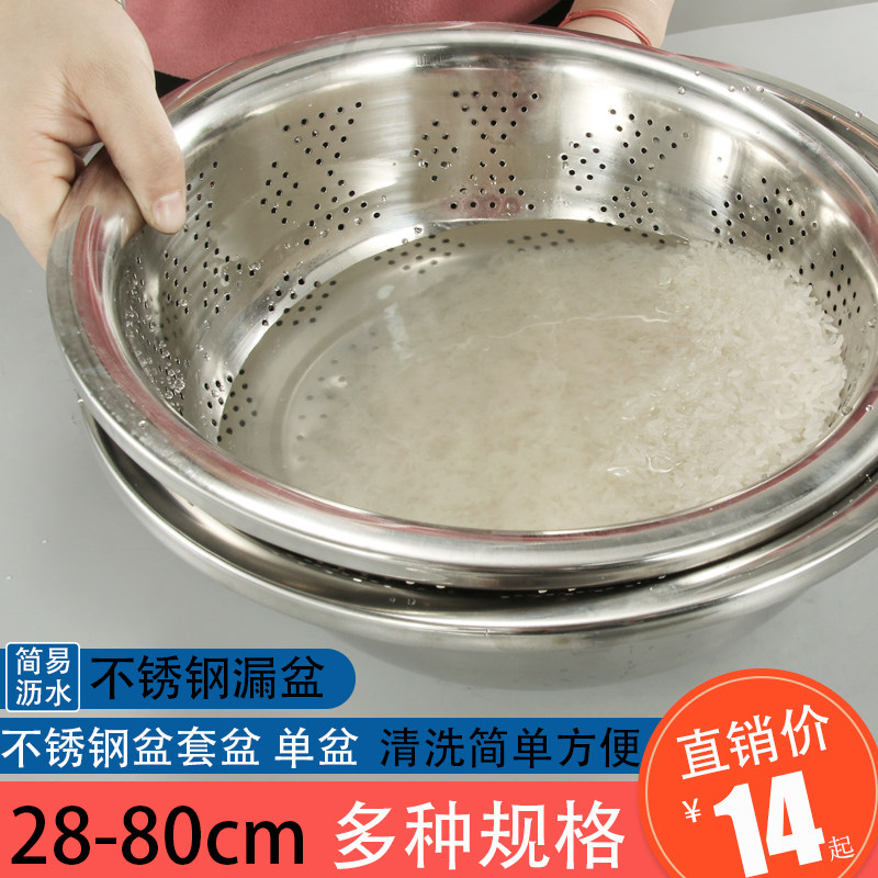Утолщенное бассейн утечки из нержавеющей стали Тао рисовый ситовый бассейн круглый сливной бассейн Большие утечки