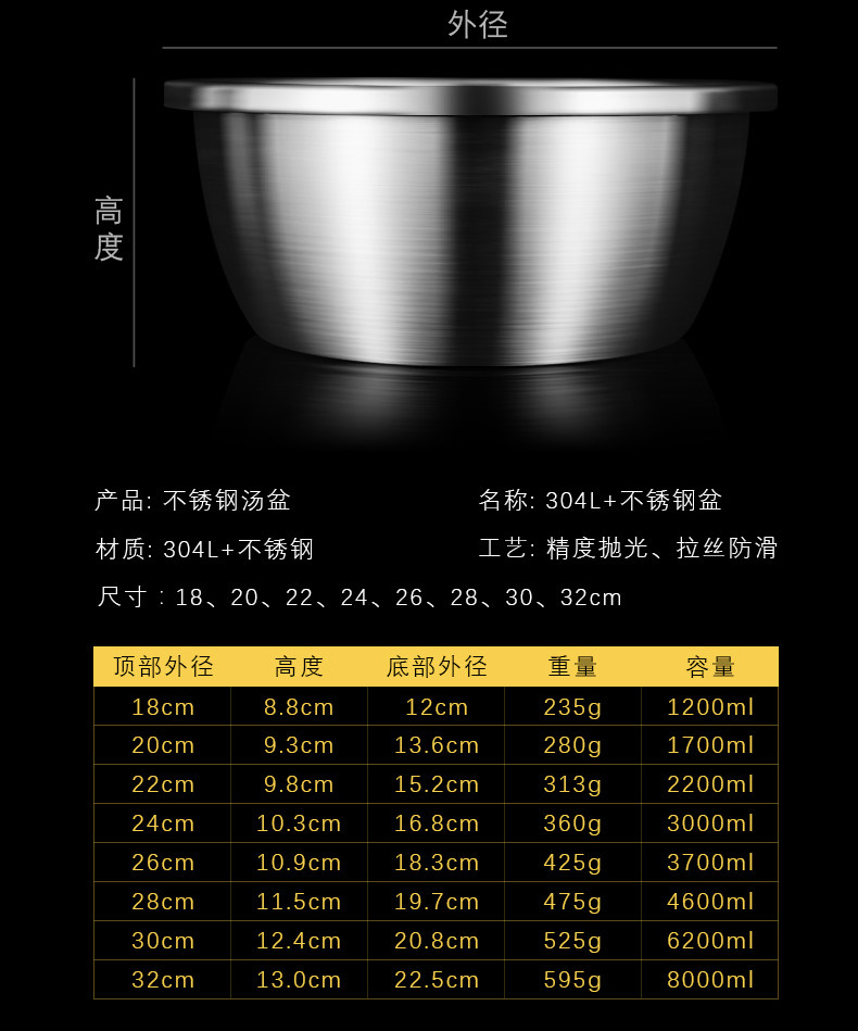 Германия 304 бассейн из нержавеющей стали с круглым и углубленным домом для мытья яиц, яиц и бассейн -пышных суповых горшков