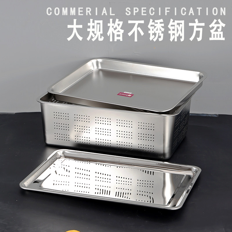 Квадратная чаша из нержавеющей стали 304 с плоским дном, прямоугольная тарелка для риса на пару, квадратная пластина, пластина для утечки, увеличенная глубокая чаша, лоток для пароварки, железная пластина
