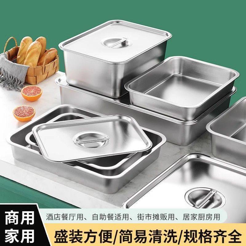 Квадратная раковина из нержавеющей стали, прямоугольная квадратная тарелка, сервировочная раковина с углублением, поднос, лоток для овощей с крышкой, квадратная коробка, пищевая крышка, кухня