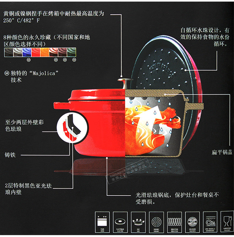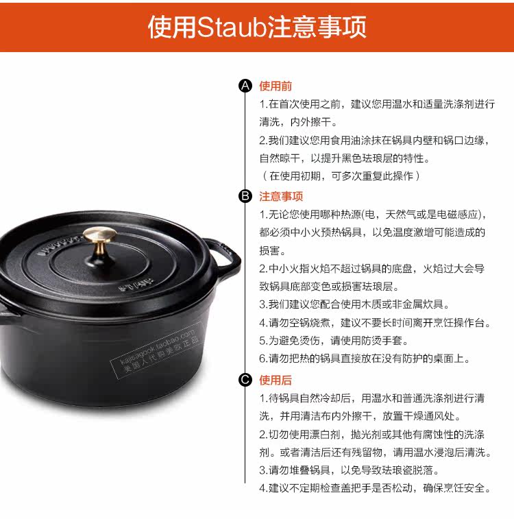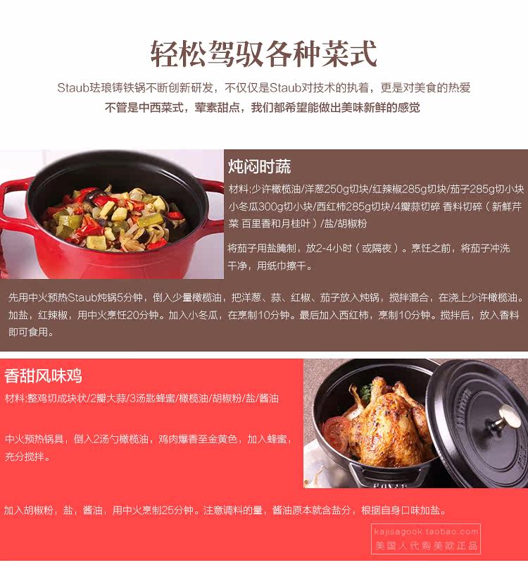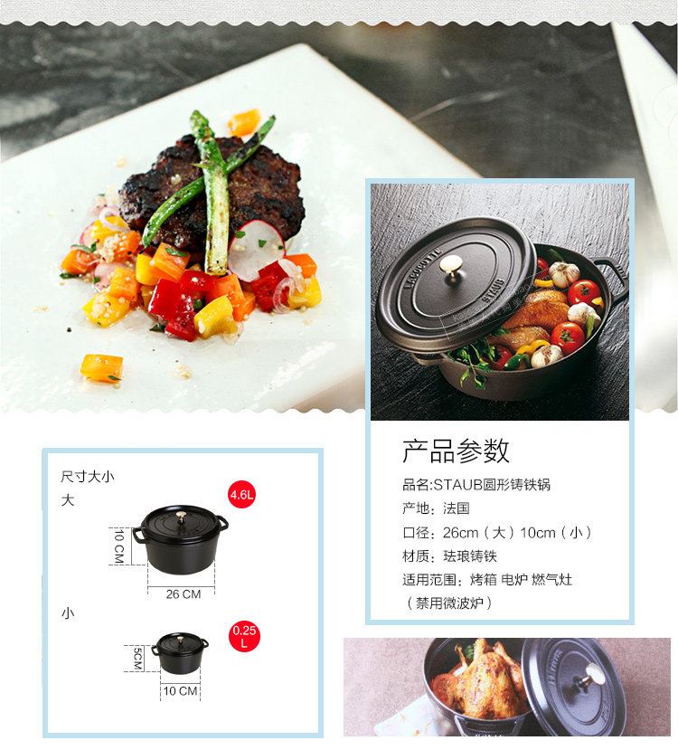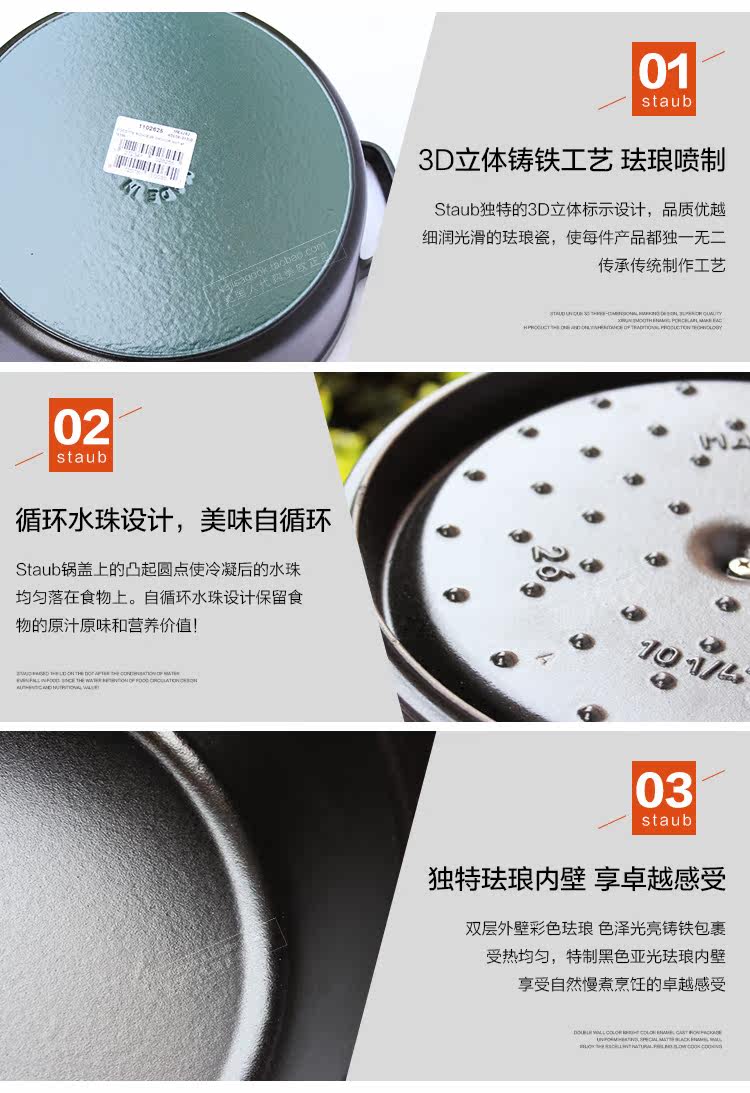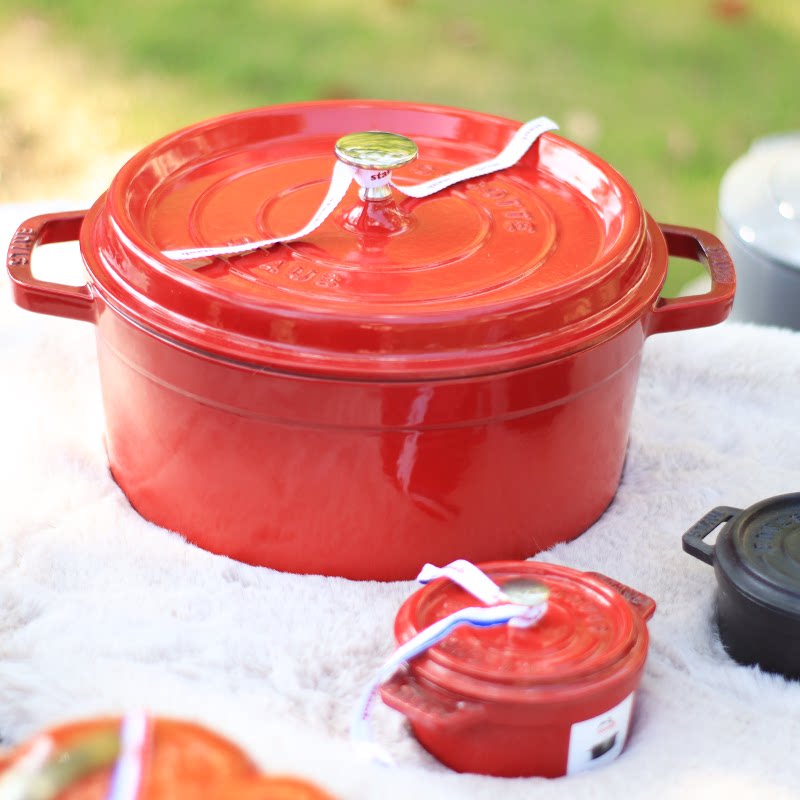 [Американцы Open] Французская эмаль Staub 26 | 24 | 22 см. Чугунная плита тушеное тушеное горшок с кастрюлем эмалевой горшок