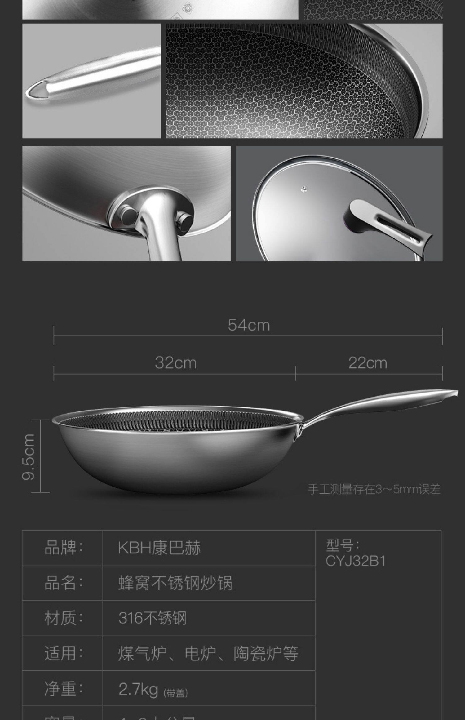 Флагманский магазин Kangbach Yueji 316 Heanlabless Steel Honeycomb нелегко придерживаться кастрюли и перемешать плита, домашняя электромагнитная плита горшок