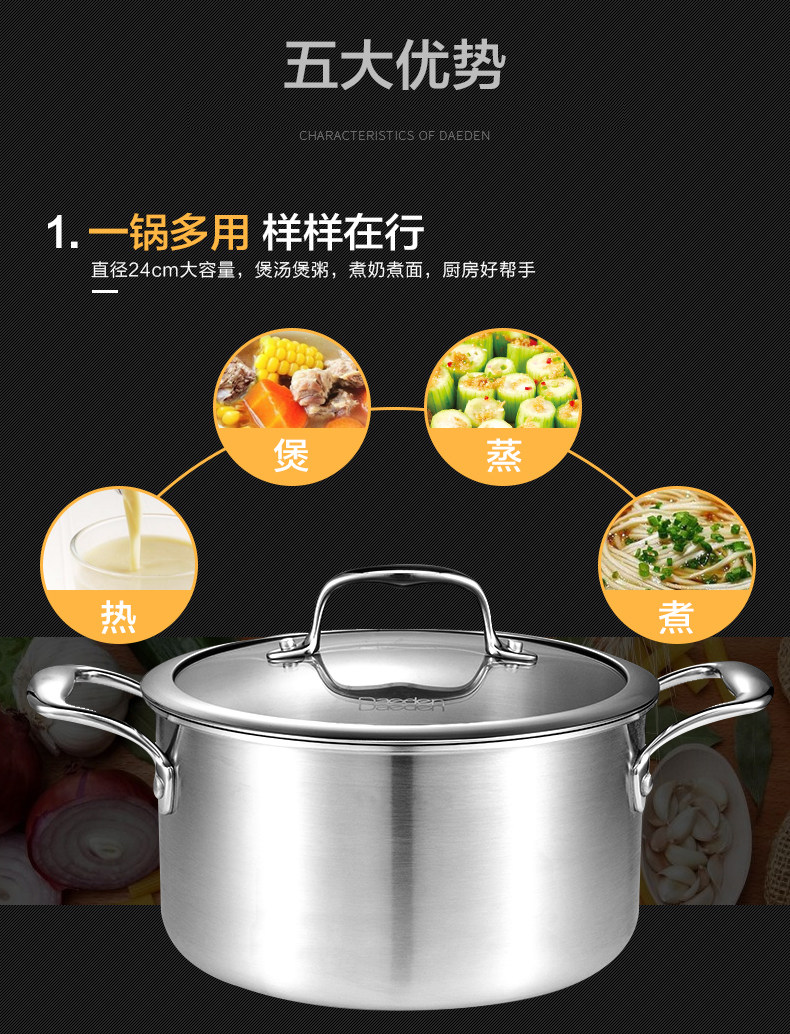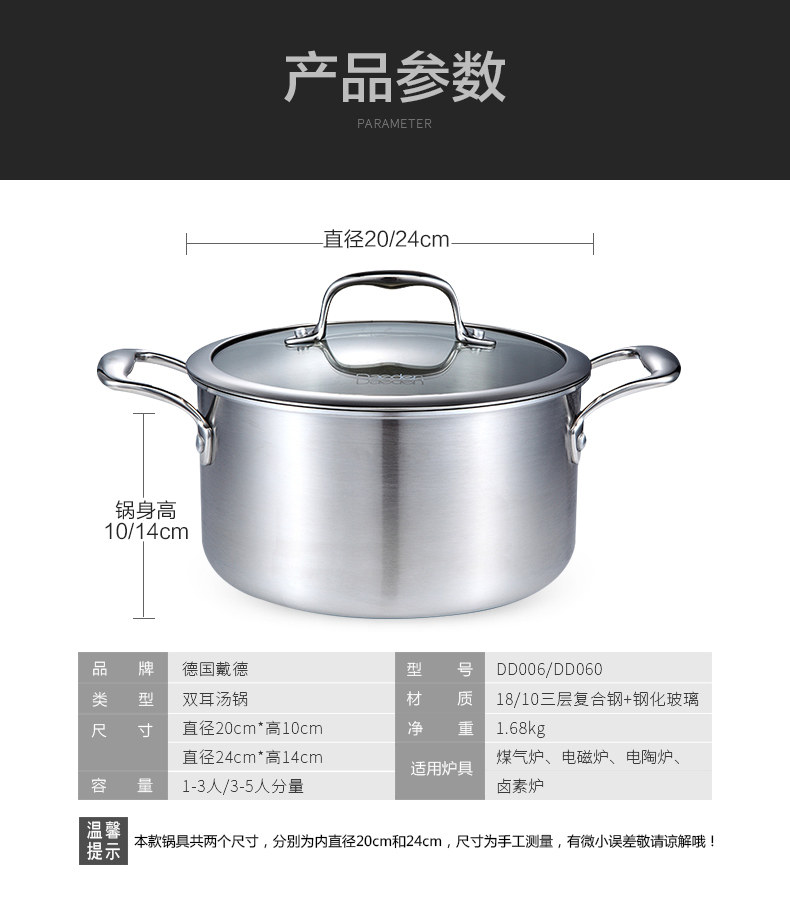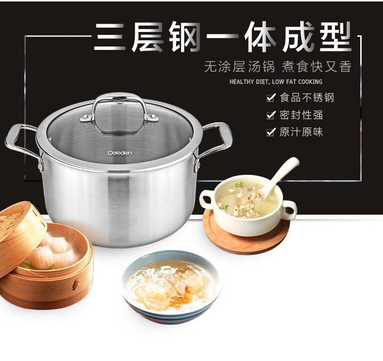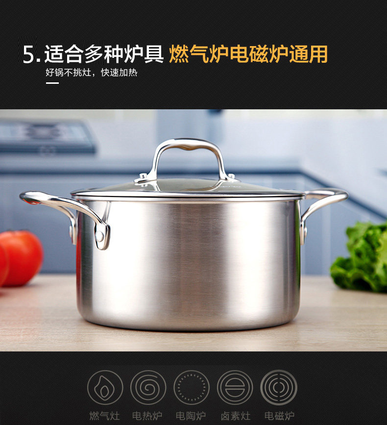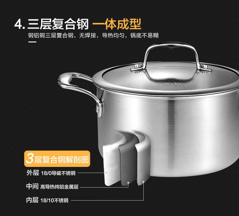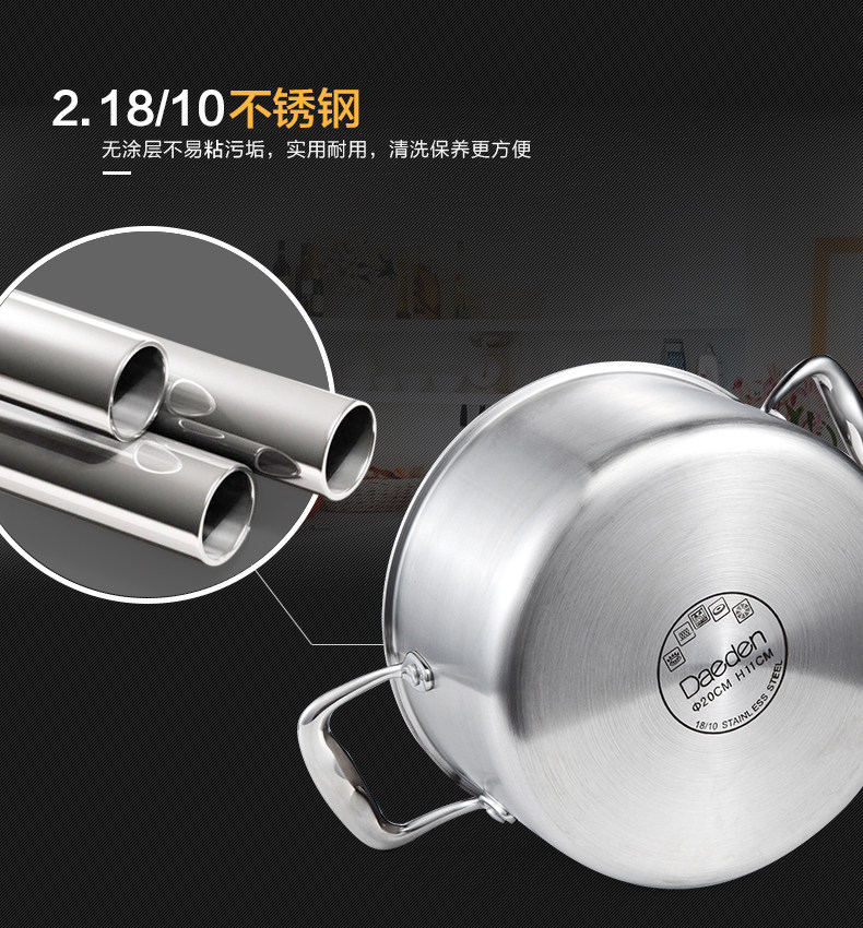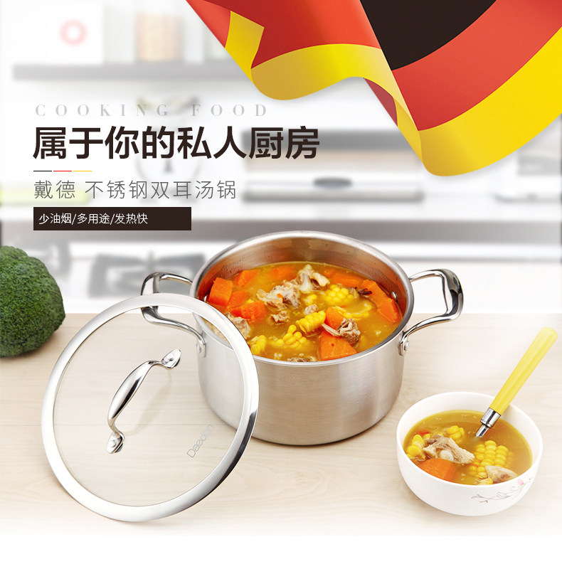 Немецкая кастрюля для супа Dade, нержавеющая сталь 304, бытовая маленькая кастрюля для приготовления пищи, утолщенная кастрюля для супа, кастрюля для рамэна, газовая индукционная плита