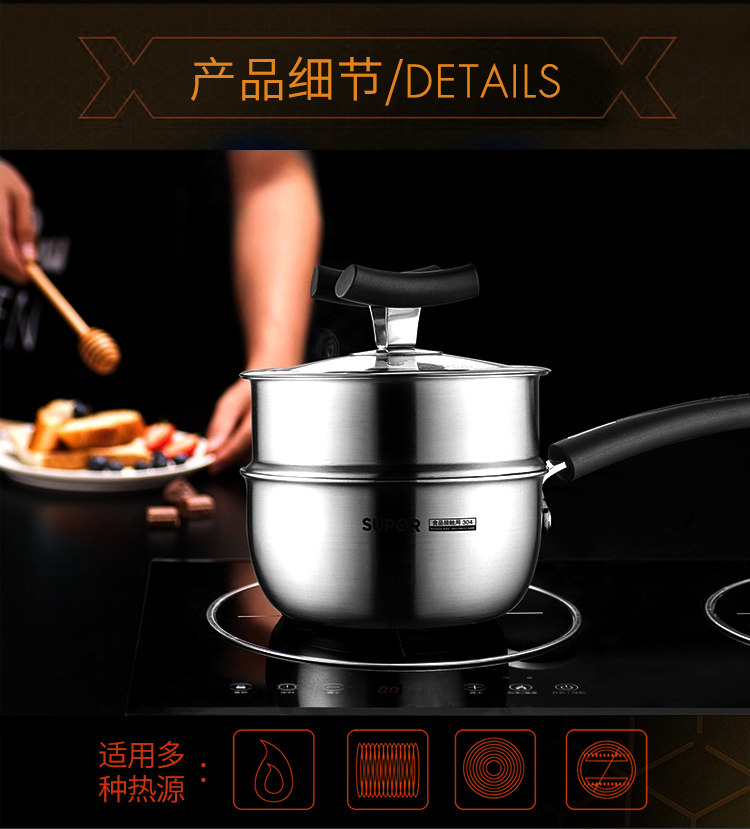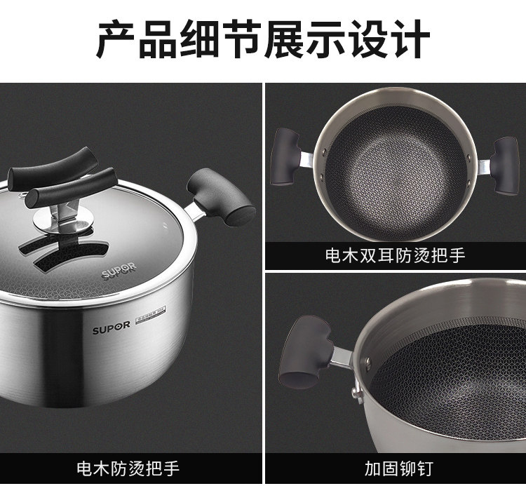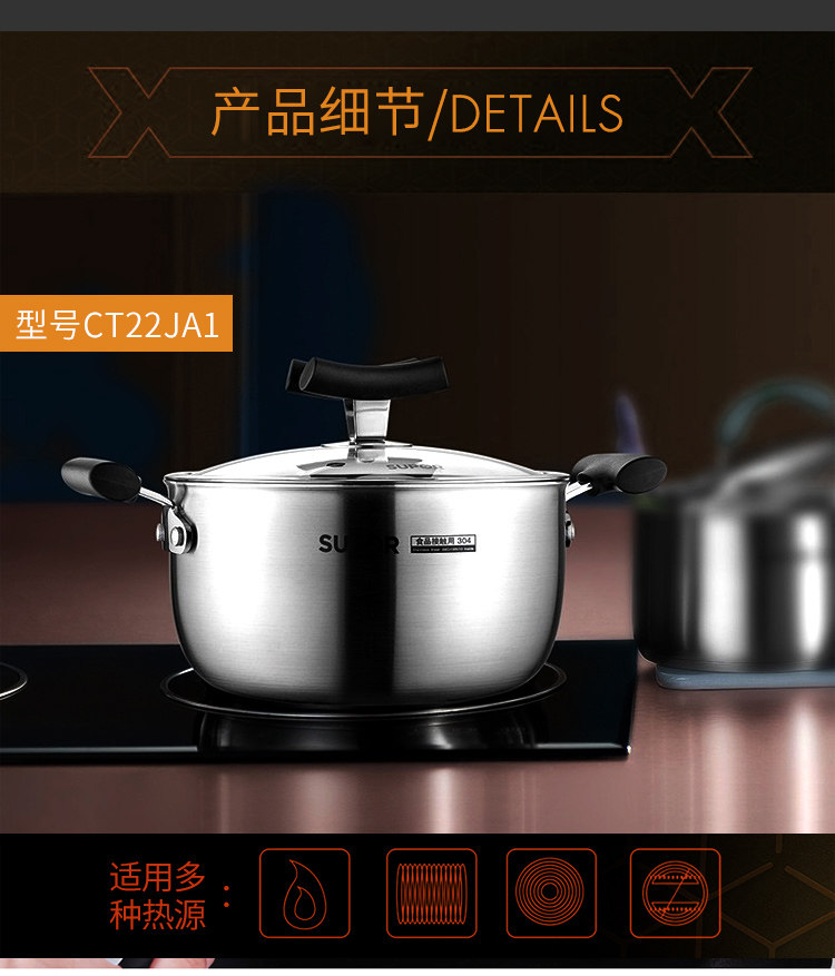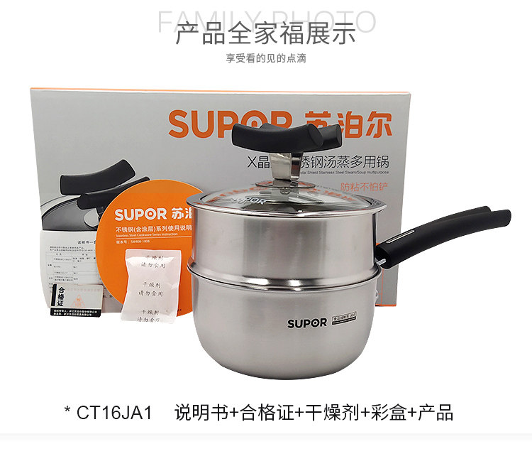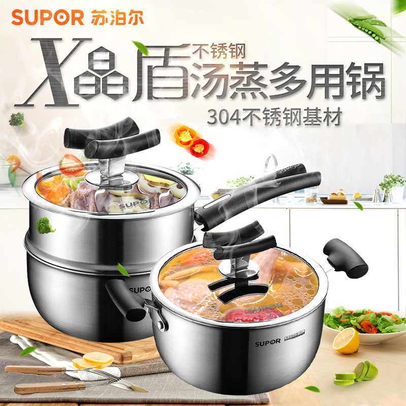 SUPOR 22CM Honeycomb x Crystal Shield 304 Стиратель из нержавеющей стали, пароварки, не стабильный газовой электромагнитная плита универсальная