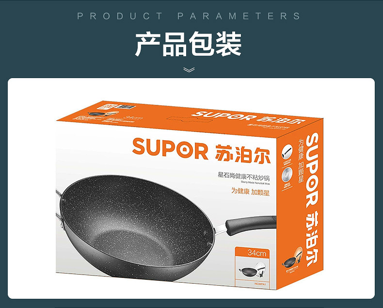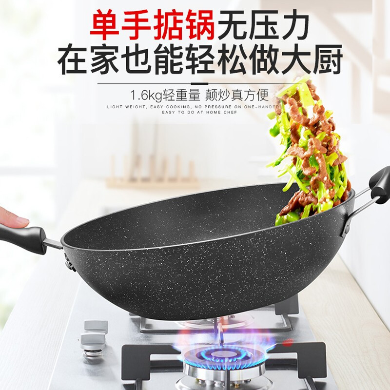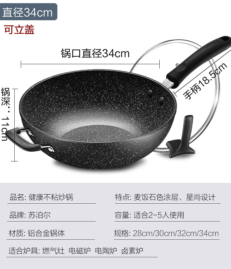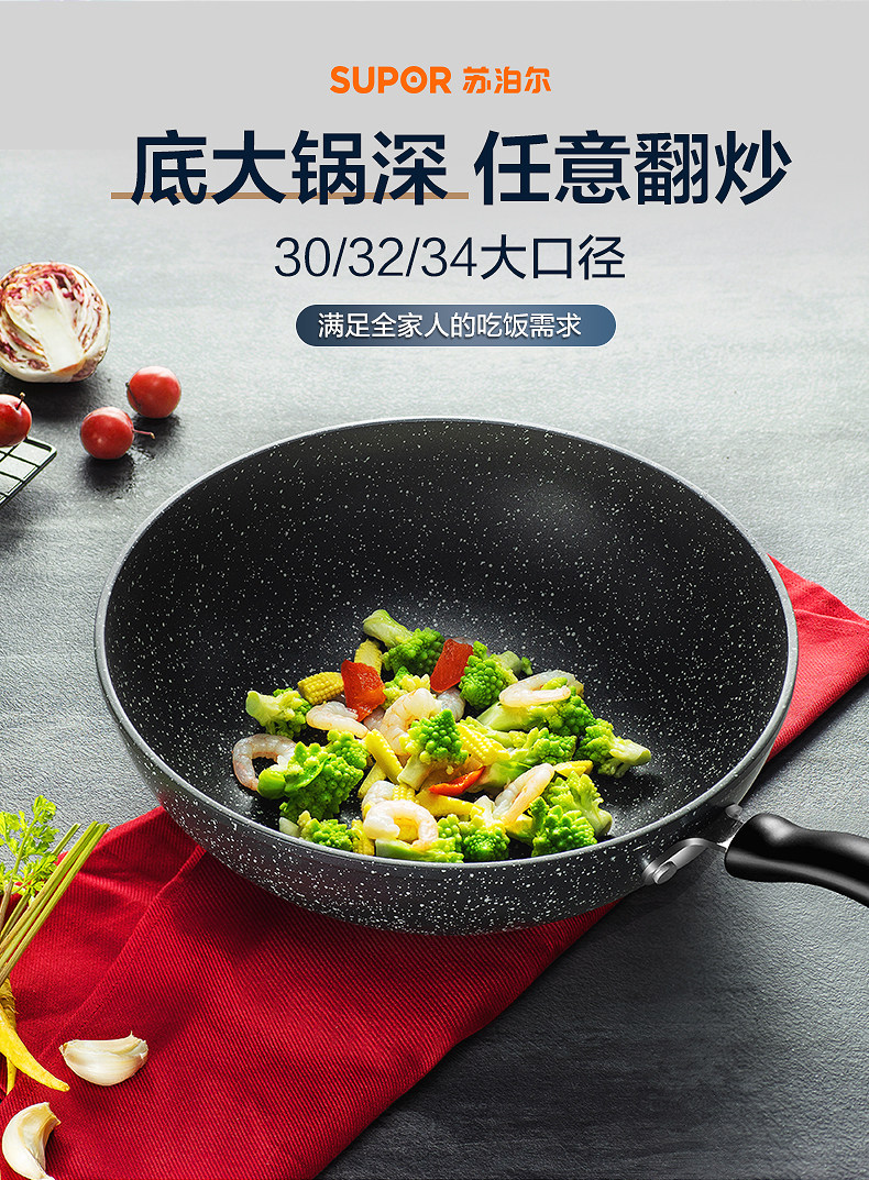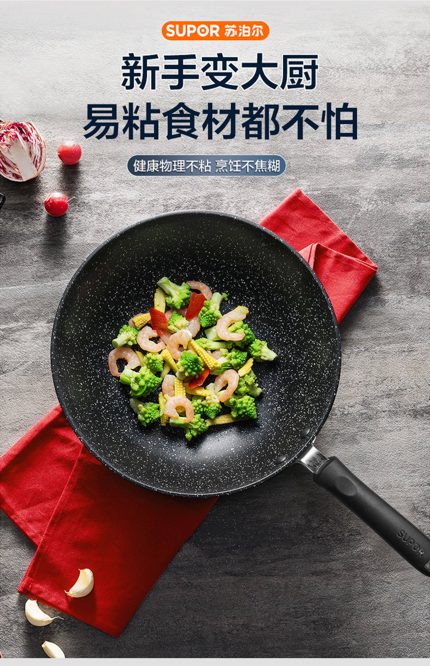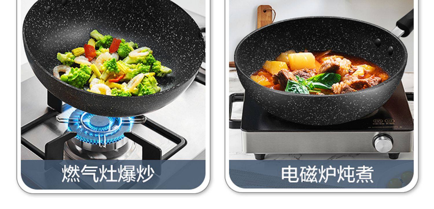 Пшеничный рис Supor, каменная нежигалка, жареный горшок, домашнее черное плоское дно рядом с масляным пумом, применимо электромагнитная плита газ