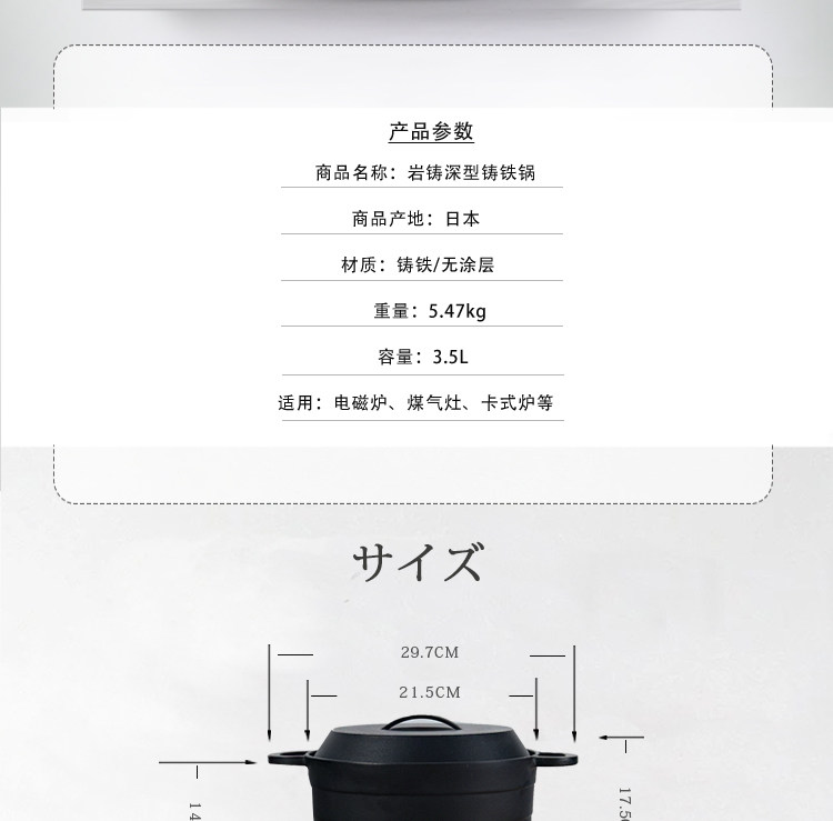 Kokuichuan Machiya South Japan Ironware 3,5 л. Большая мощность глубоководя чугун