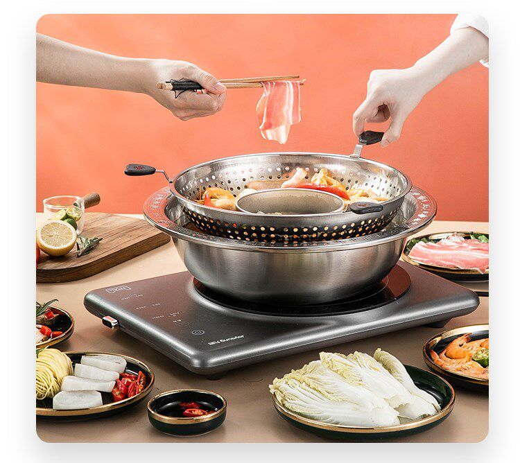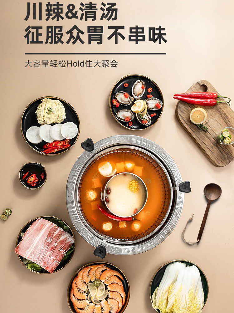 Вращающийся лифт горячий горшок домики, обстановка коммерческая многопрофессиональная нержавеющая сталь горячий горшок чашка горшка.