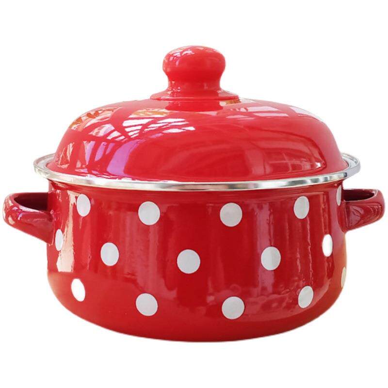 Толстая эмалевая эмалевая горшка с двойной каштаной кастрюль Старая эмалевая кипящая тушеное тушеное печать Дом плоский горшок маленький горячий горшок универсальный