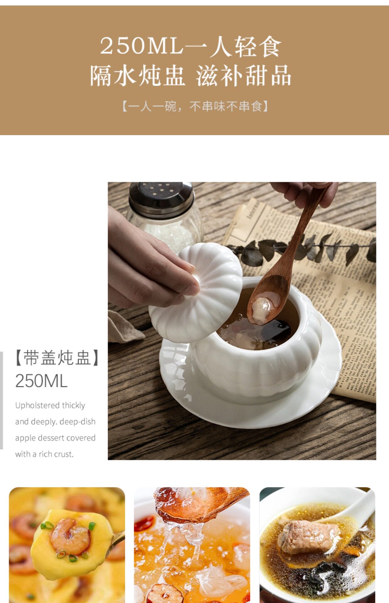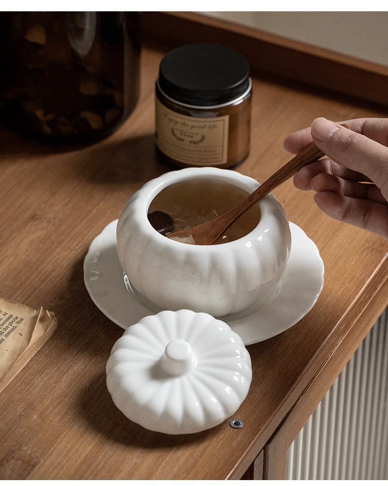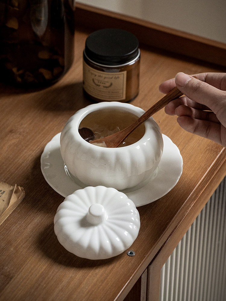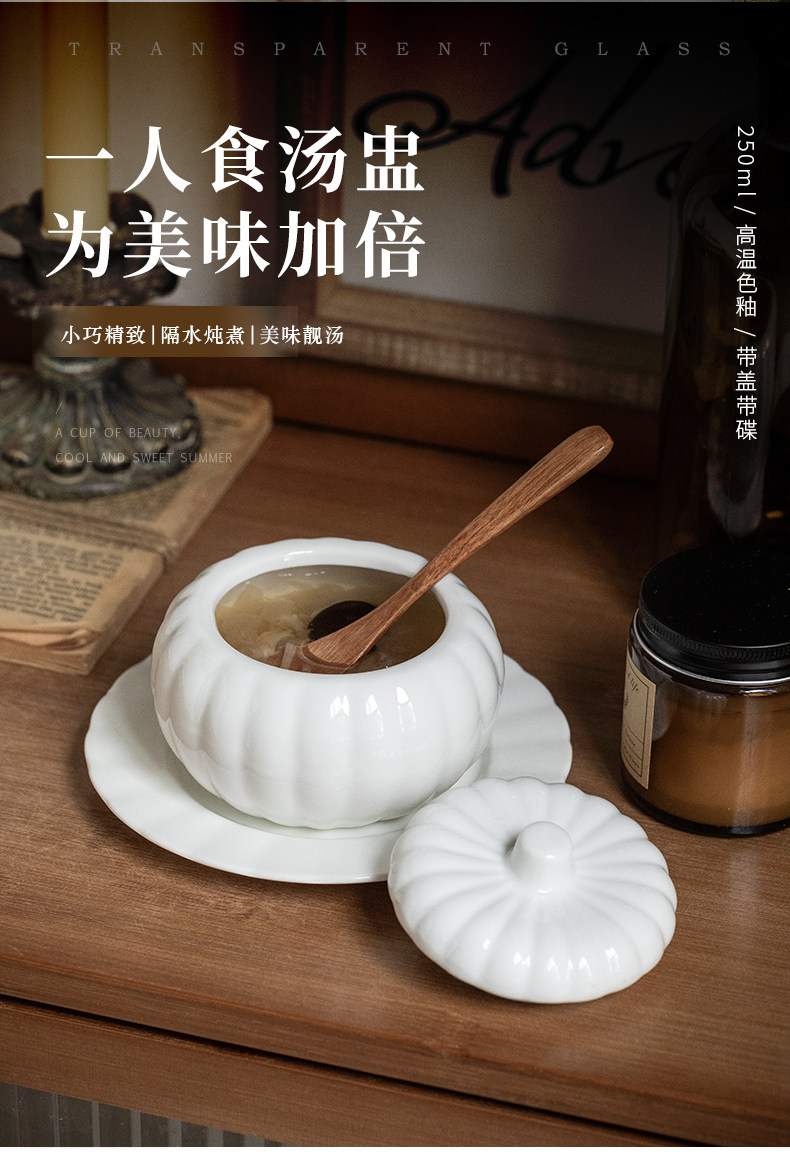 Конец переулка 〖Здоровье Господь Евангелие〗 Один человек с тыквенным суповым чашкой чашки птичьего гнезда тушеное тушеное котлетное гнезда керамическая десертная миска