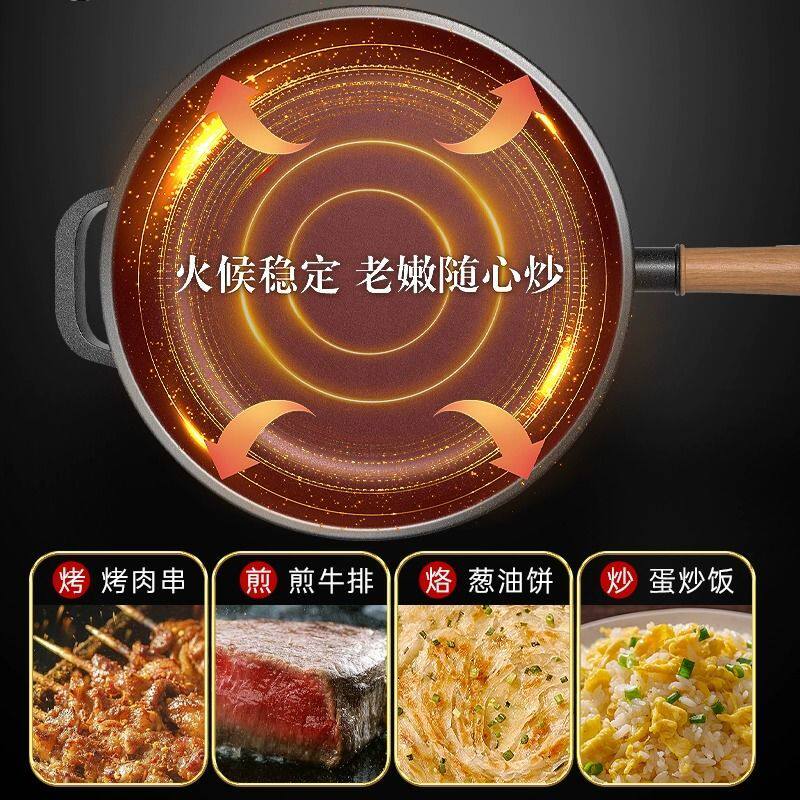 Сковорода, плоское дно, не -стильная кастрюля, без покрытия, стейк, блинной горшок, плита, чугунный горшок, старая модная кухня для блинчика