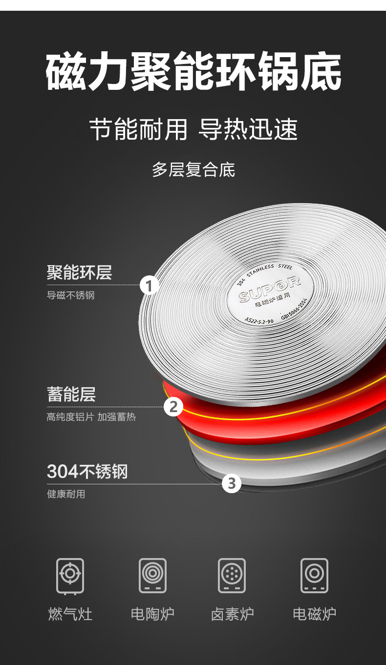 Supor High -Dristure Порта 3 газовая плита Индукционная плита универсальная маленькая мини -хом 04 Плита из нержавеющей стали 24 см.