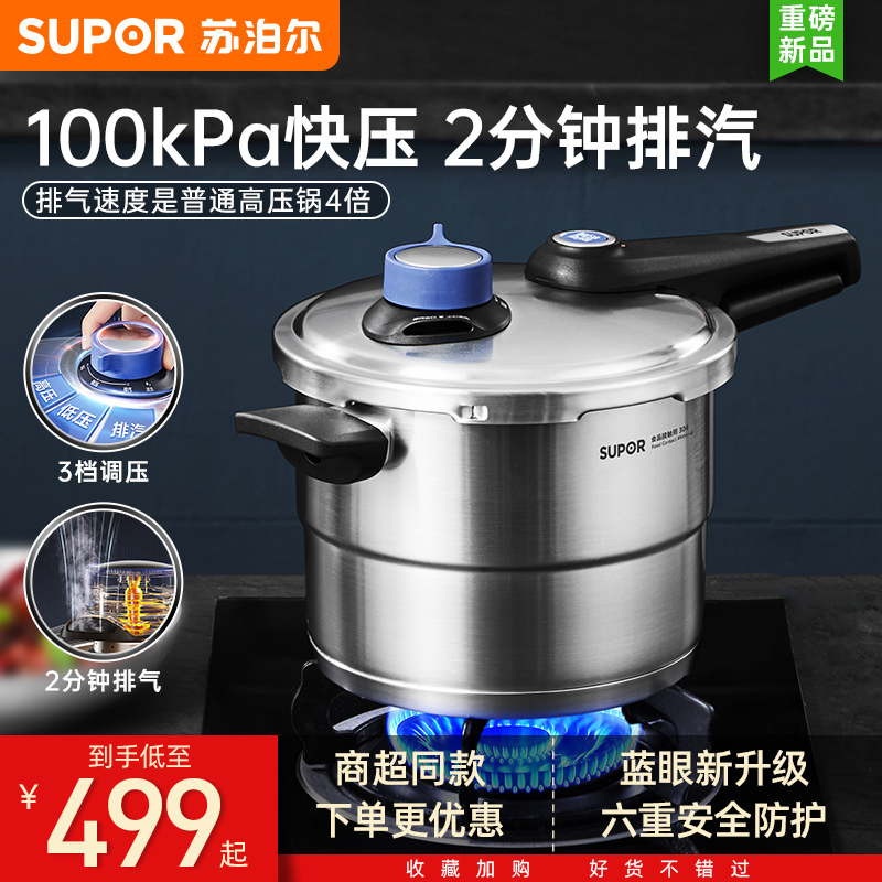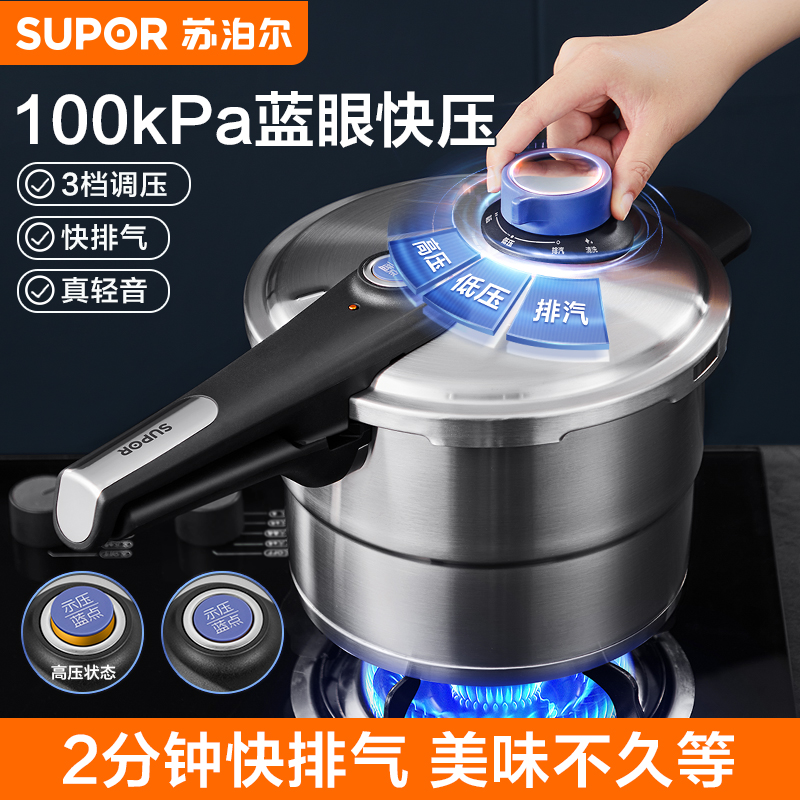 Supor High Dative Pilor 304 из нержавеющей стали, регулируя быстрый горшок с газообразным голубым глазом.