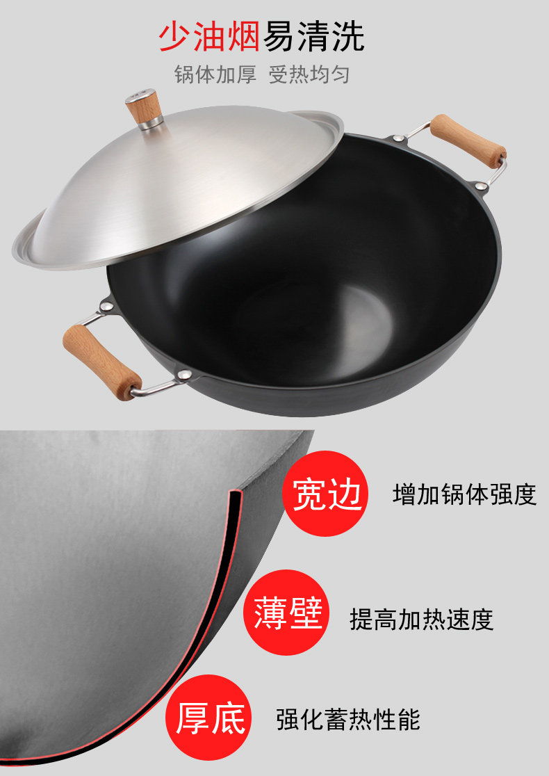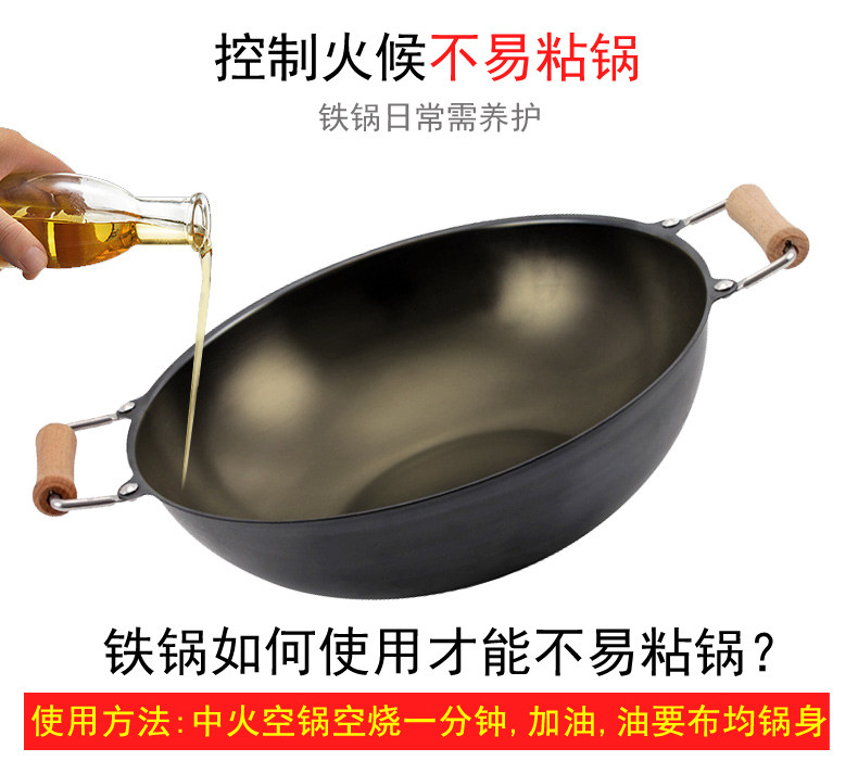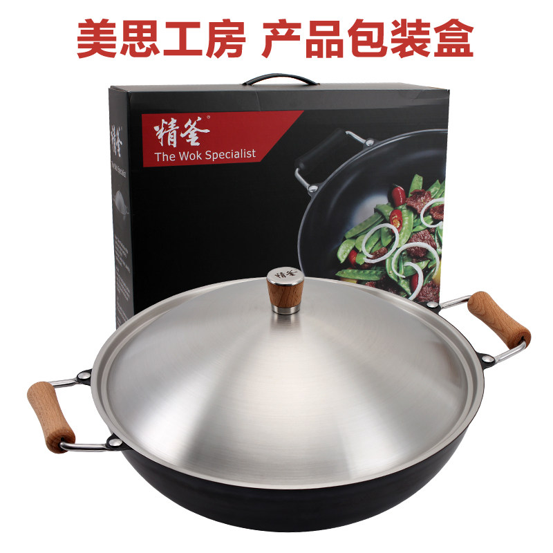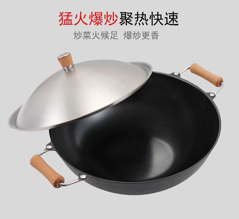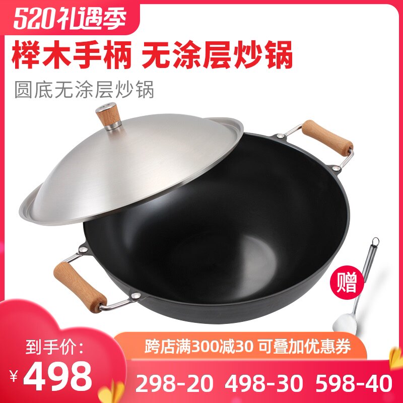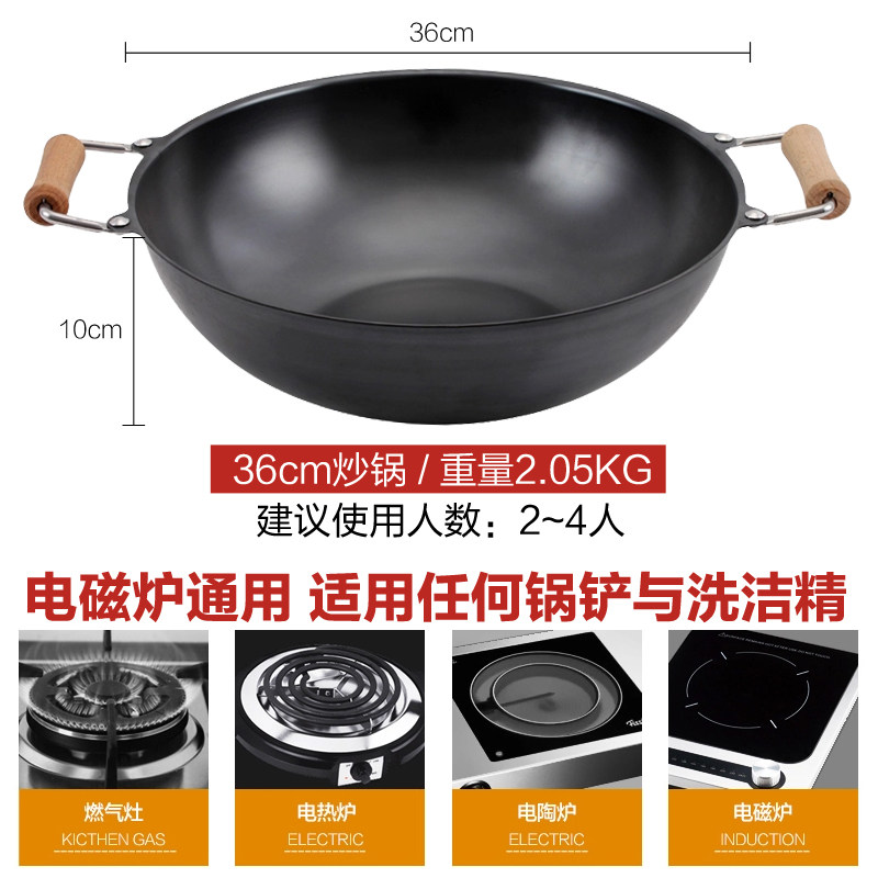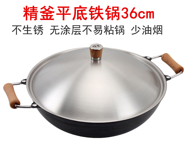 Meisi Gongfang тонкий чайник без покрытия, нет ржавчины, меньше масляного дыма, жареный горшок, железный горшок 36 см. Плоское дно тонкое железное жаркое