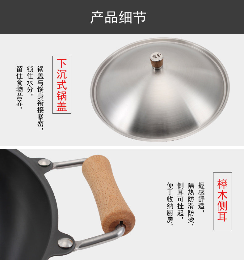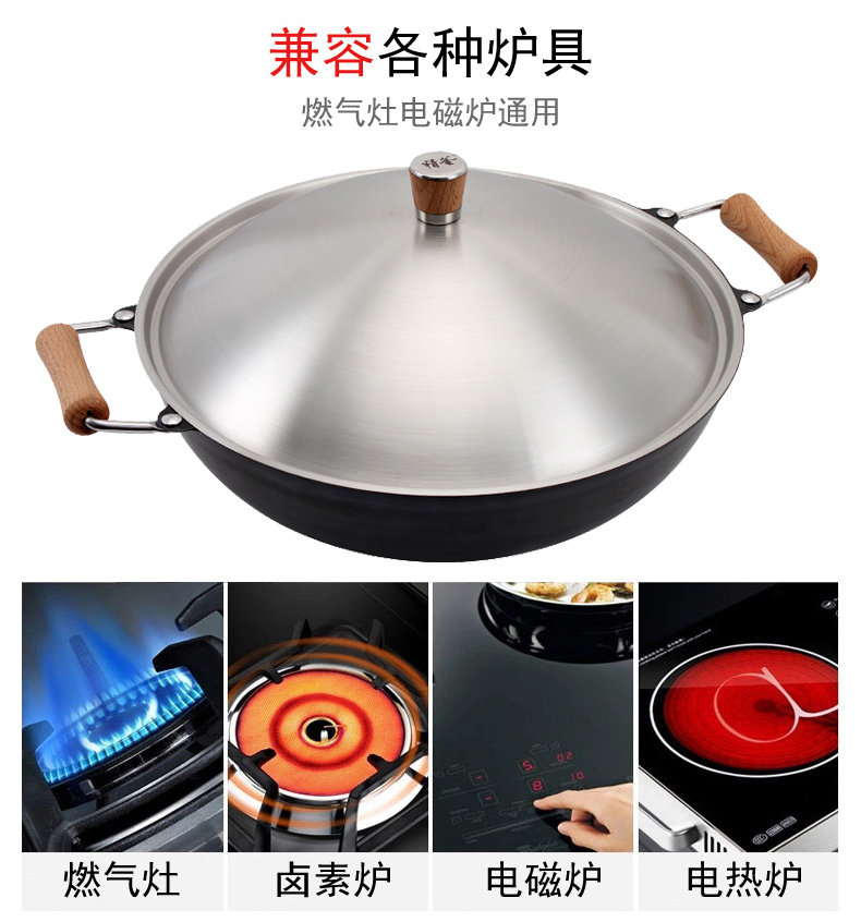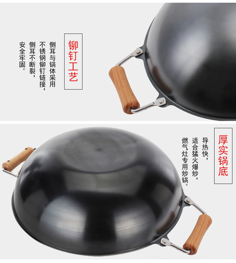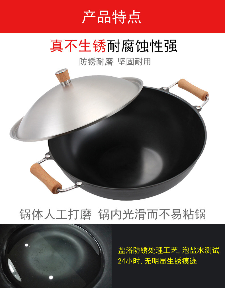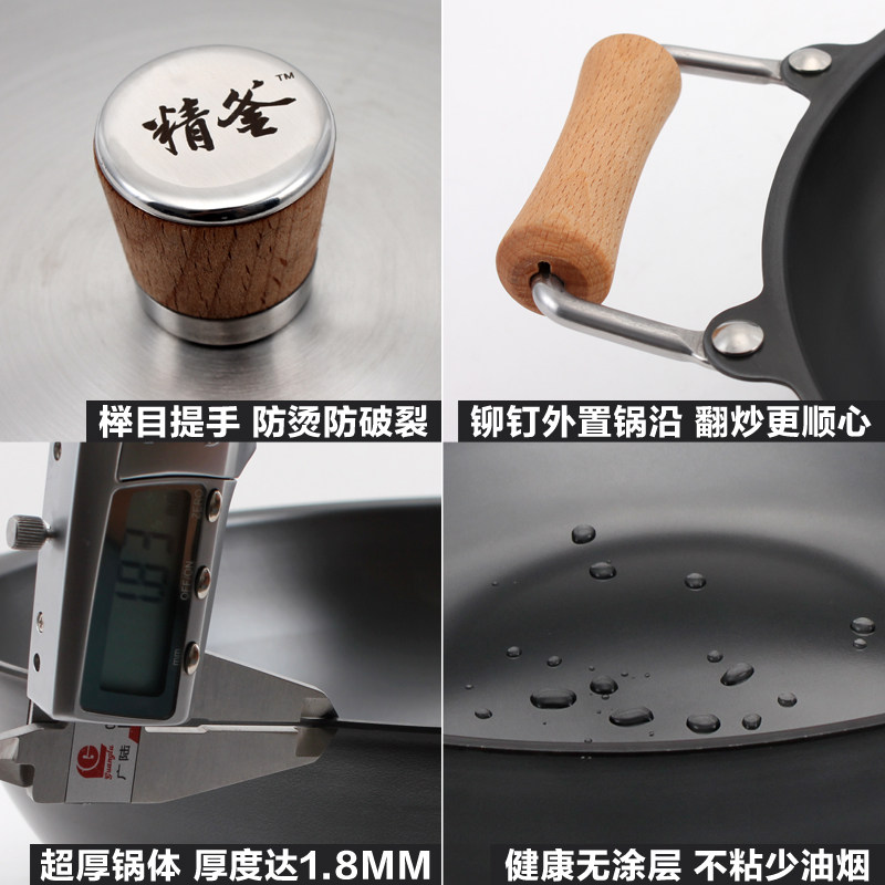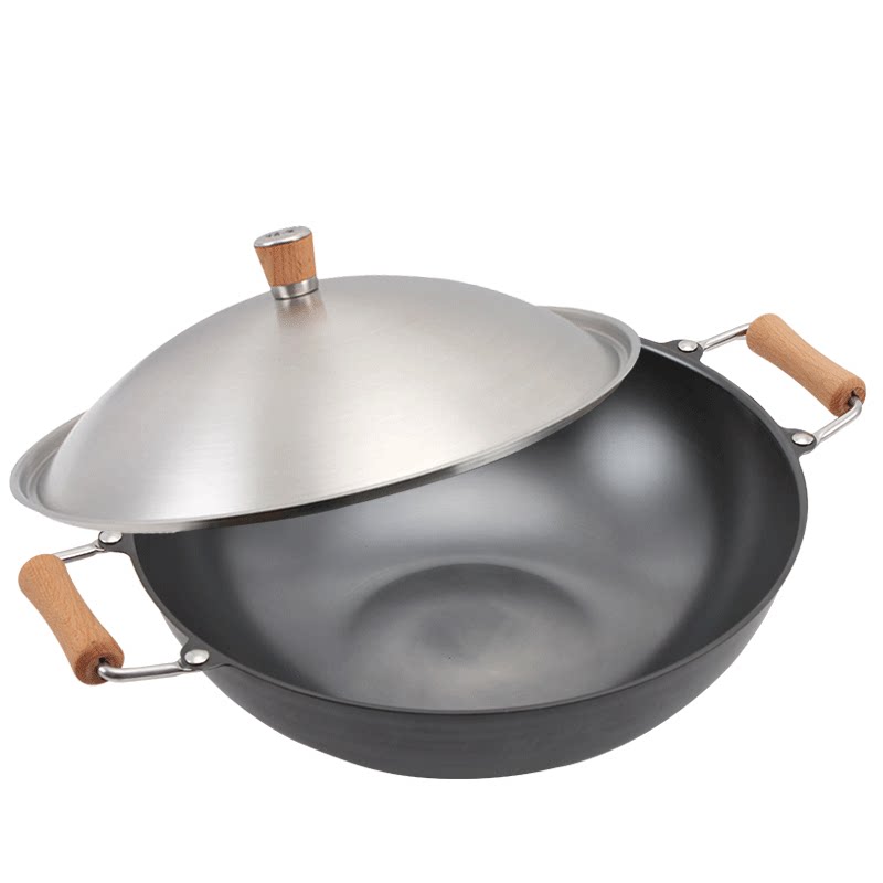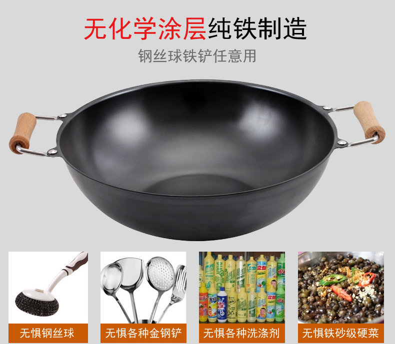 Meisi Gongfang тонкий чайник без покрытия, нет ржавчины, меньше масляного дыма, жареный горшок, железный горшок 36 см. Плоское дно тонкое железное жаркое