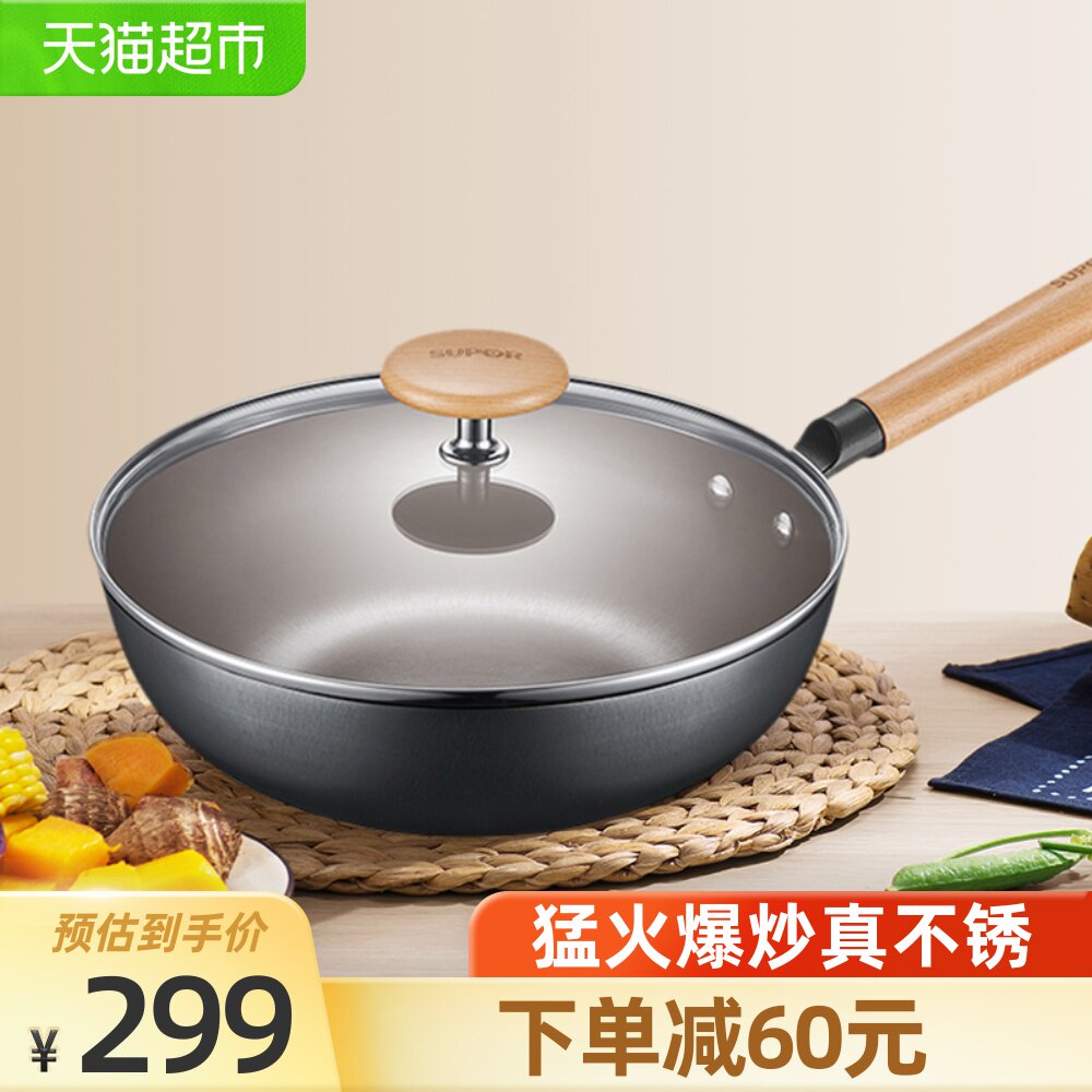 SUPOR IRON POTRING FUNSION WOK действительно из нержавеющей жареной горшки 28 см. Газовая плита Универсальная нежигальная жареная скота из горшки.