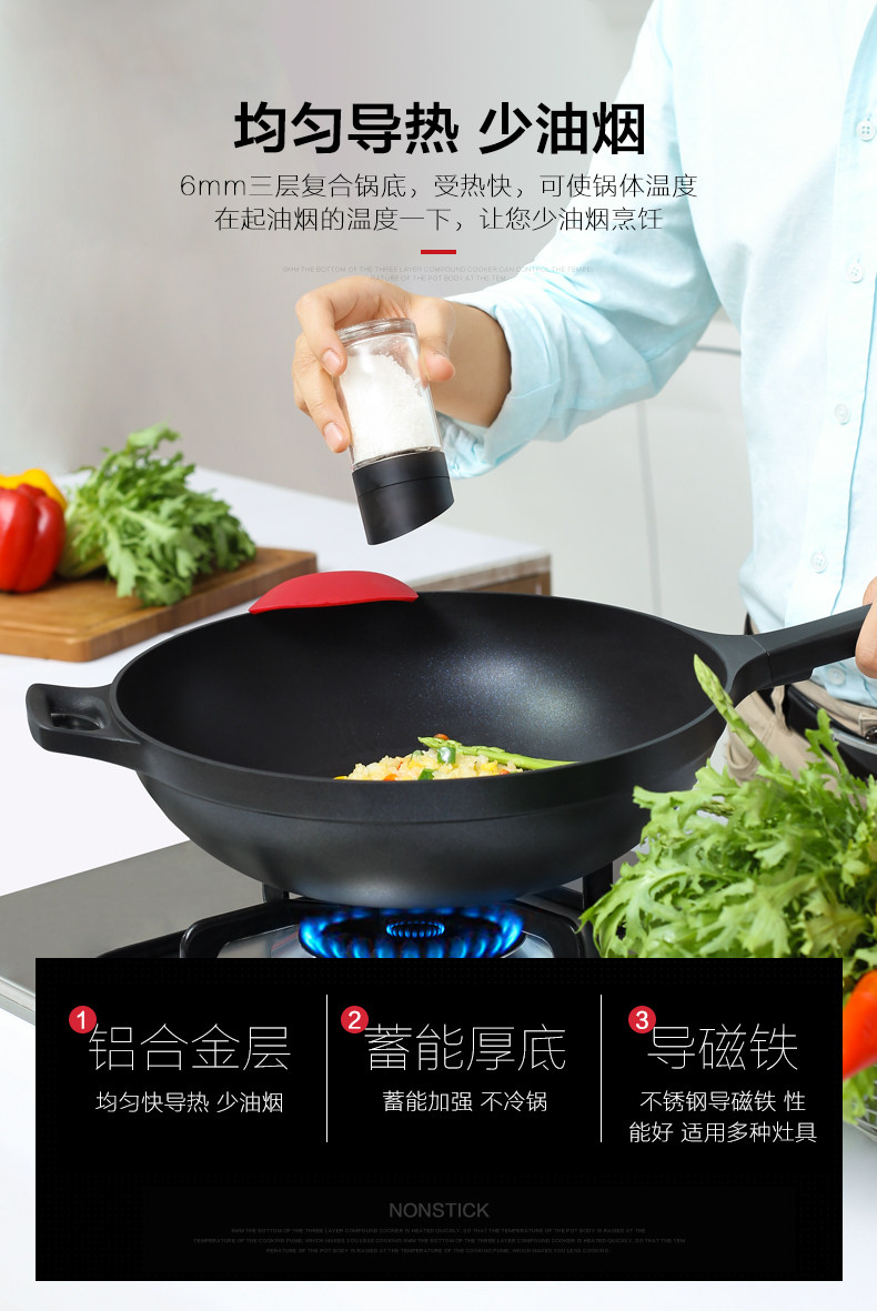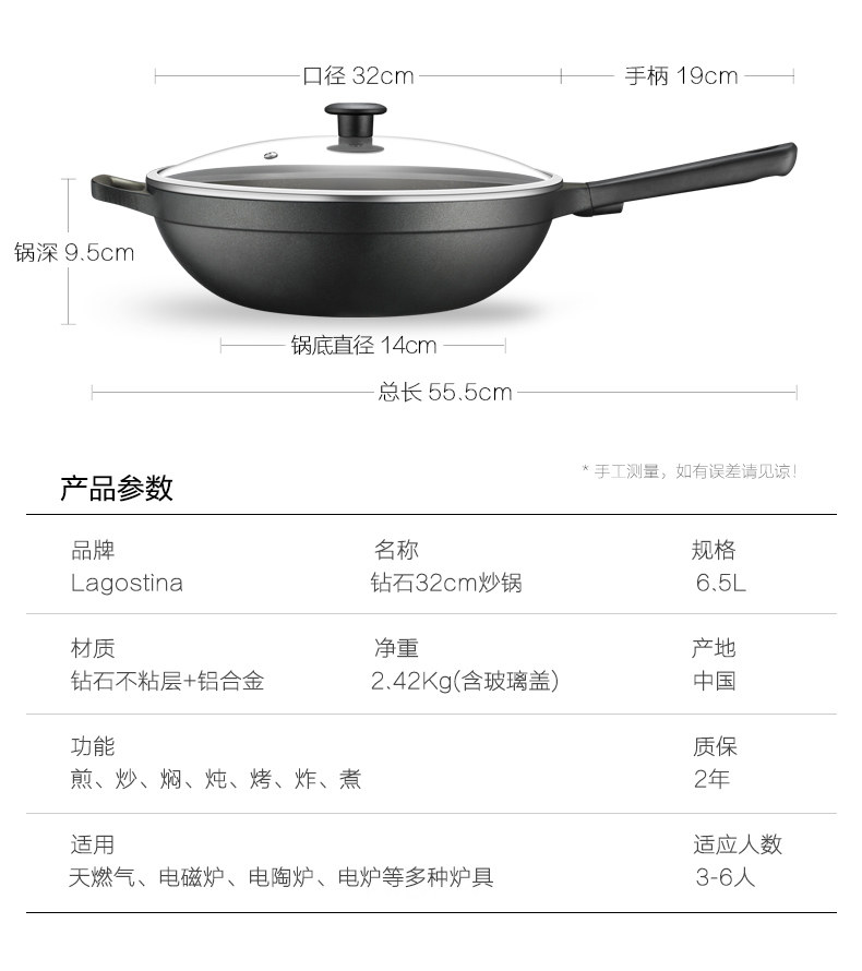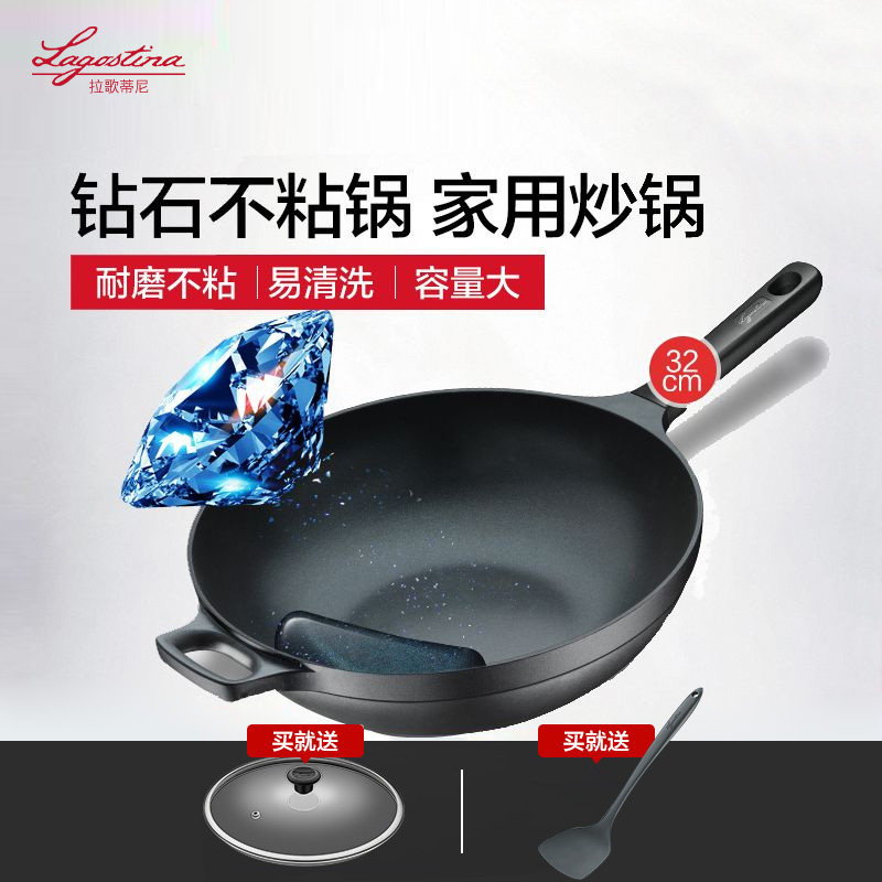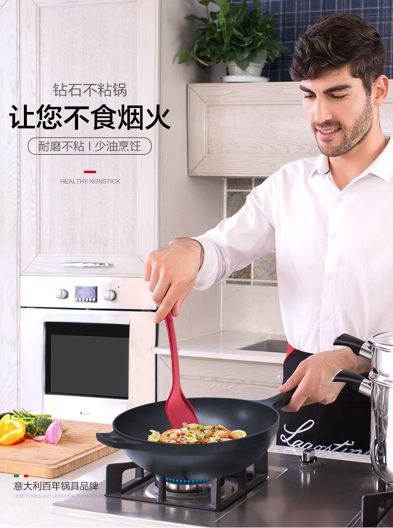 Logouteini Blue Diamond 32см -жад -фрид -кастрюль, не -стабильный горшок, около масляного дыма, скова из жарки, домашняя электромагнитная газовая плита, применимо