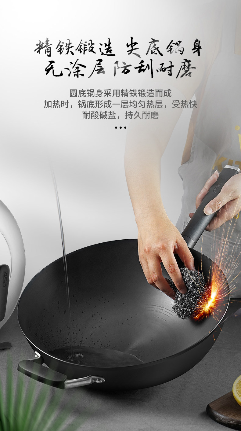 Масло Айшиды, вы контролируете железную кастрюлю, большой взрыв вок, без покрытия, без ржавчины, домашнего горшка, 32 -сантиметровый горшок с жареной жаркой