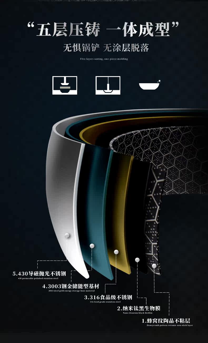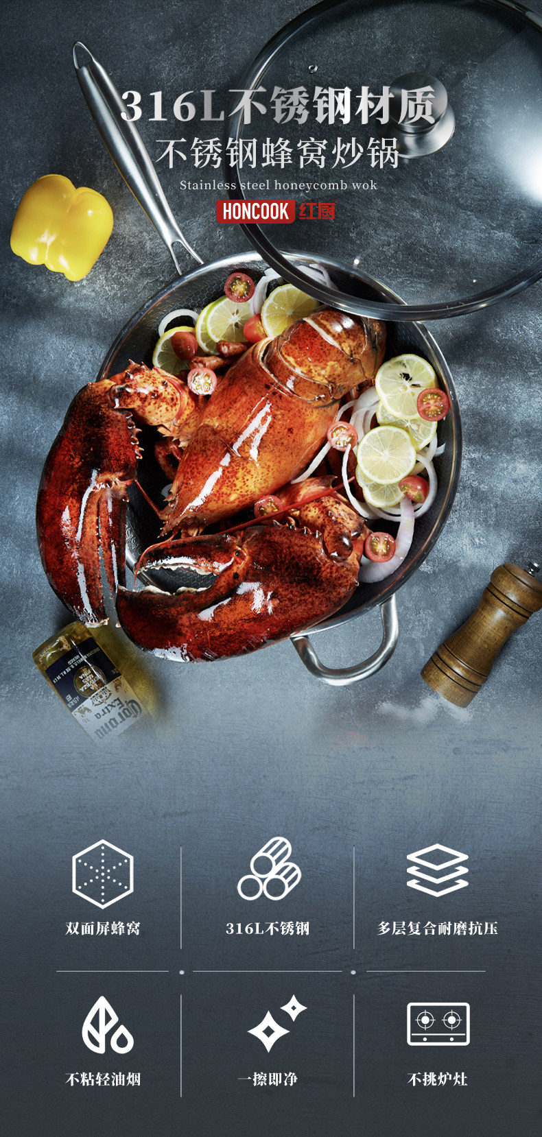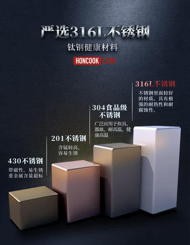 红厨 316 Соты из нержавеющей стали не -стабильной кастрюли -кастрюли -фри -жареная сковорода.