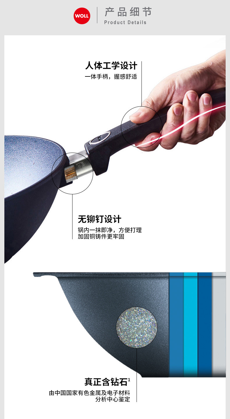 WOLL немецкий импортный вок с антипригарным покрытием серии Diamond, большой диаметр 32 см, немецкий вок с антипригарным покрытием