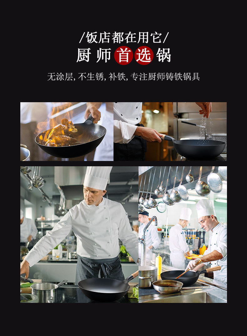 Железная сковорода -Фрэд -кастрюль, не -стабильная сковорода, без покрытия, без покрытия газовая плита Специальный ресторан Коммерческий коммерческий ресторан Pure Zhangqiu старая большая жареная плита Дом