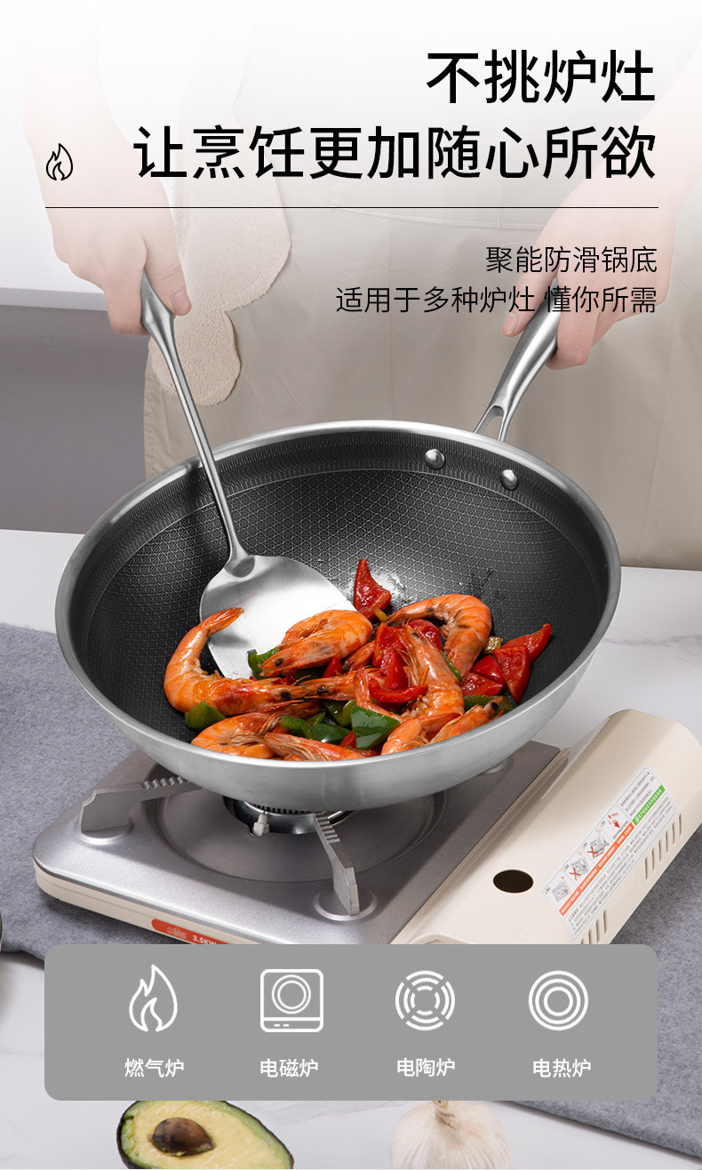 张小泉 304 Пятое поколение соты Несполена WOK FRY 24-32 см. Кухонная домашняя плита газовая плита Universal Universal