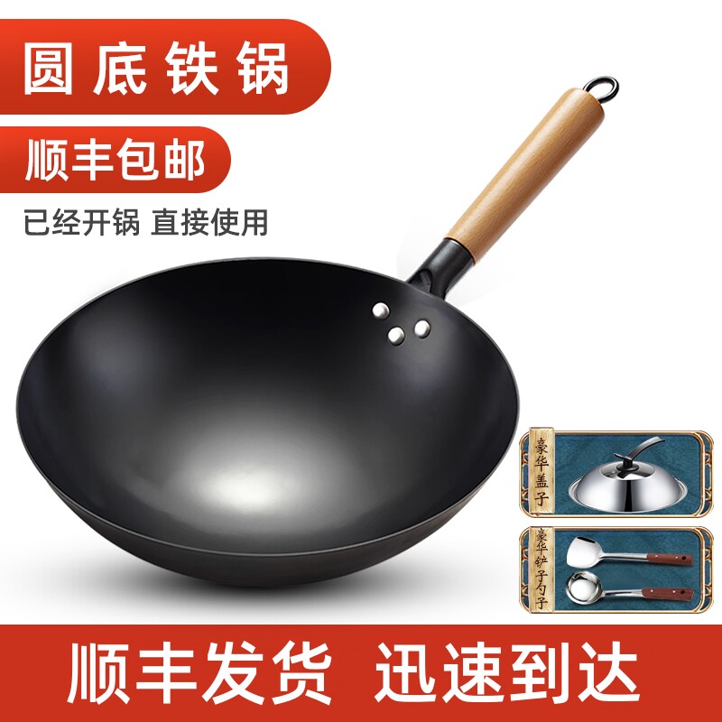 Подлинный Zhangqiu Традиционный старый старый в стиле железный горшок с жареным плита. Бессоковая горшка без уборки.