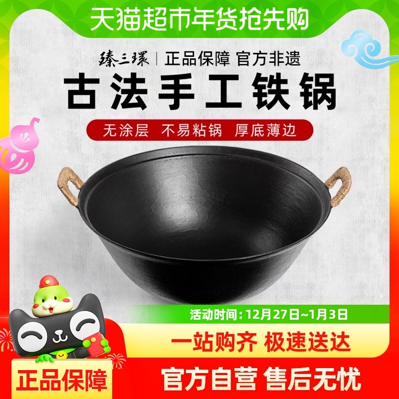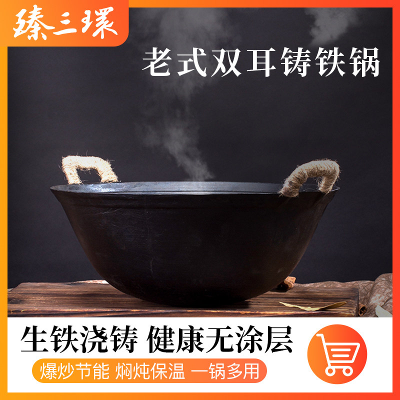 Чугунная кастрюля Zhensanhuan с толстым дном и тонкими стенками, старомодная железная кастрюля, бытовая чугунная кастрюля с двумя ушами, которую нелегко приклеить к кастрюле с газом