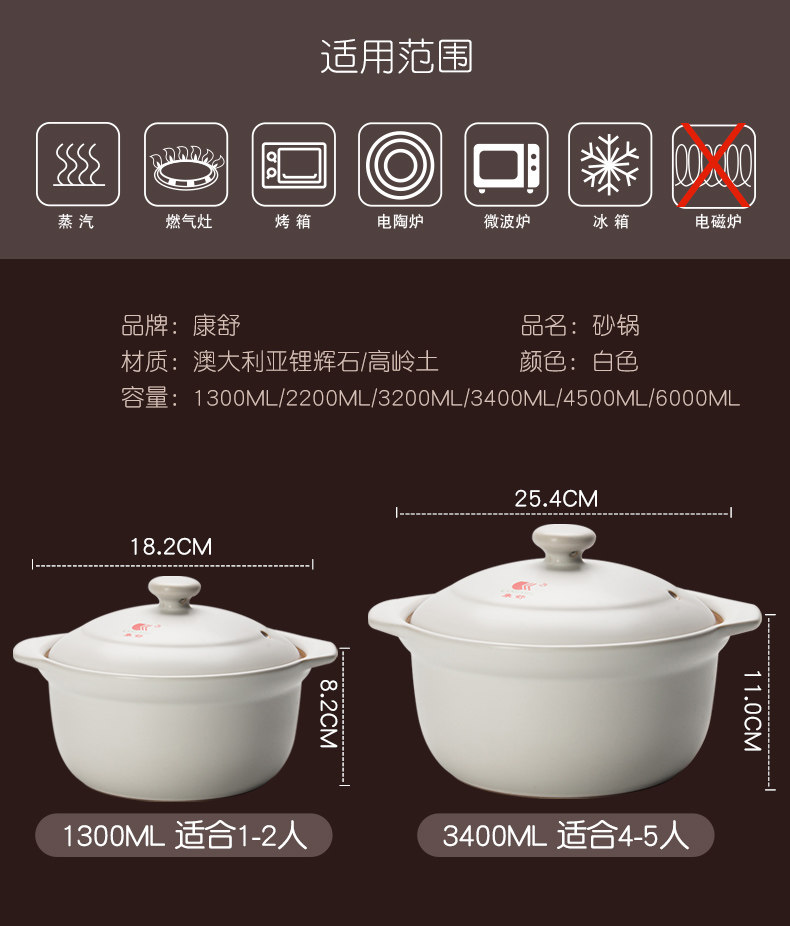 康舒 Домохозяйство Большая -капля запеканка, суп, запеканка, светлый огонь высокотемпературный устойчивый к керамическому горшеку