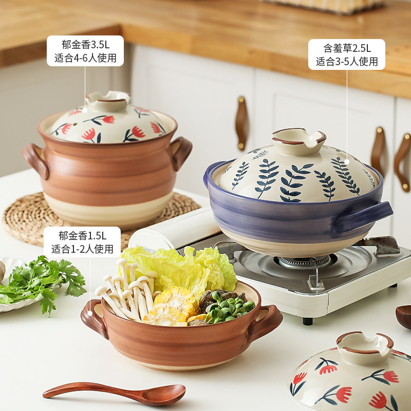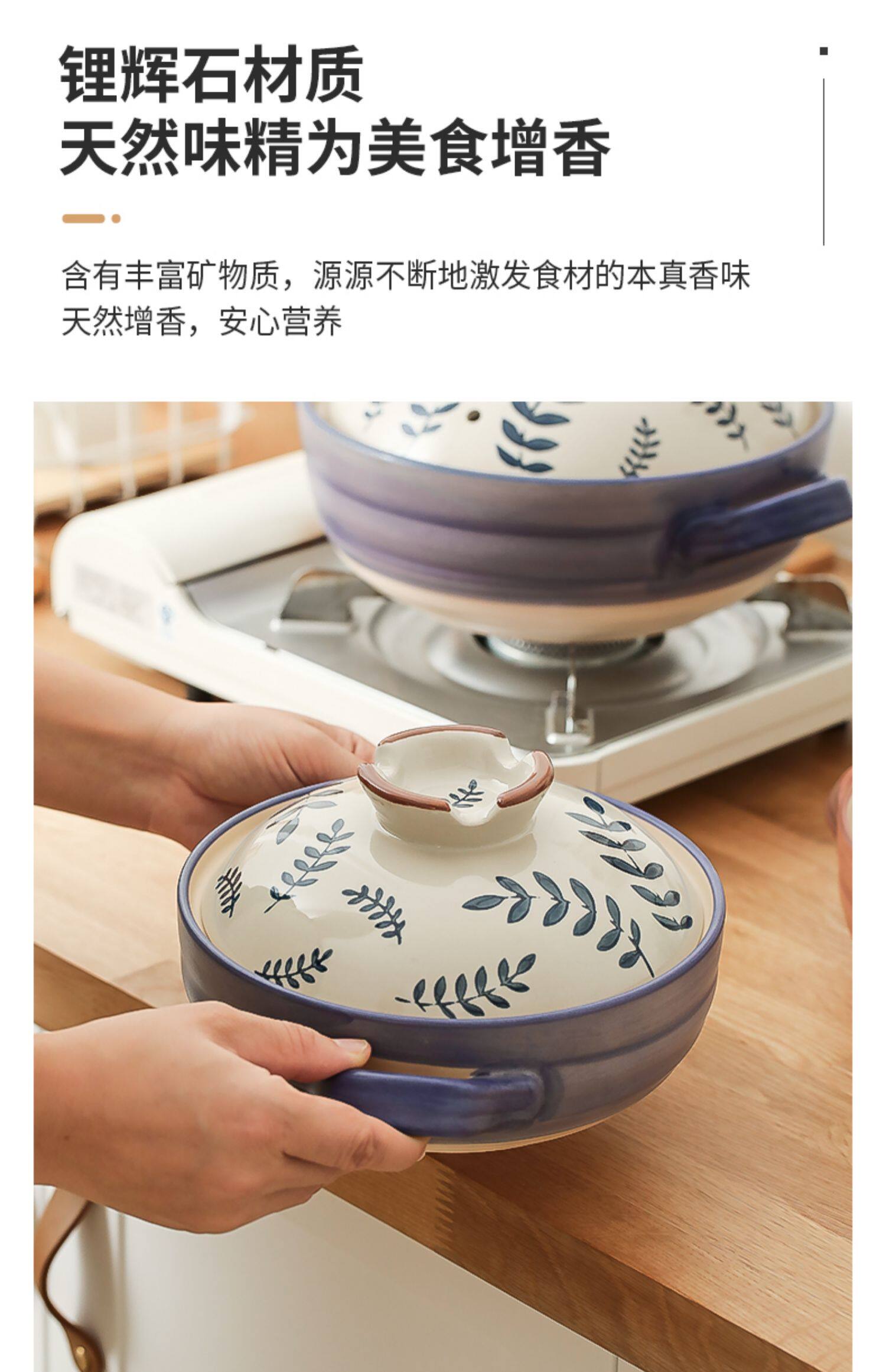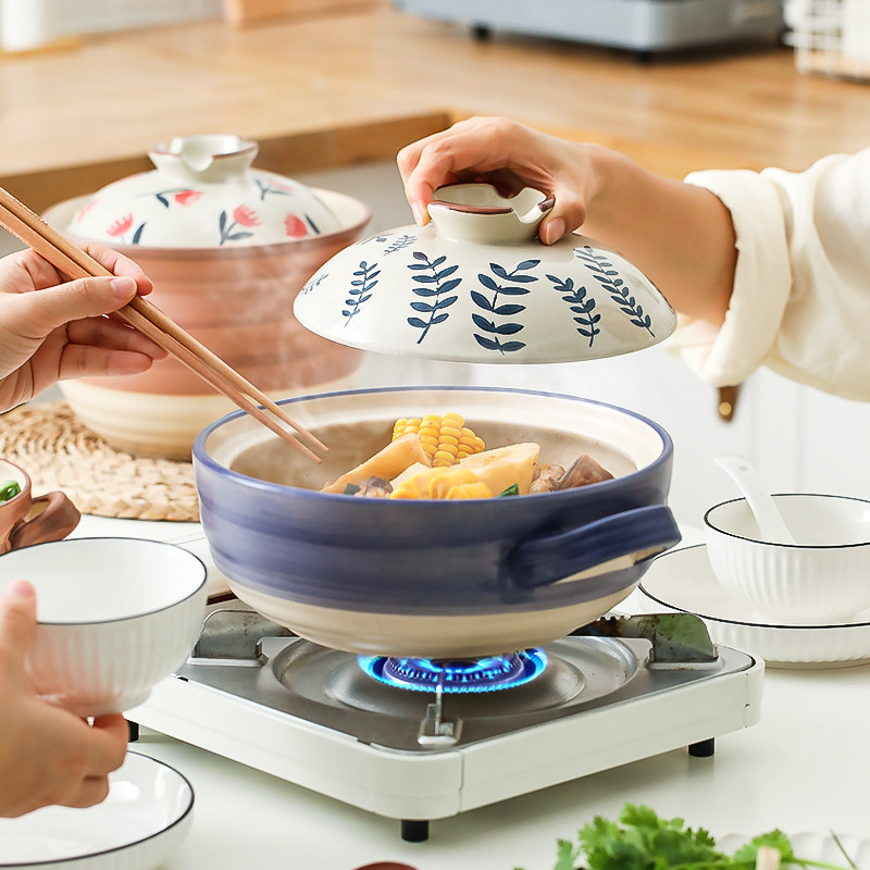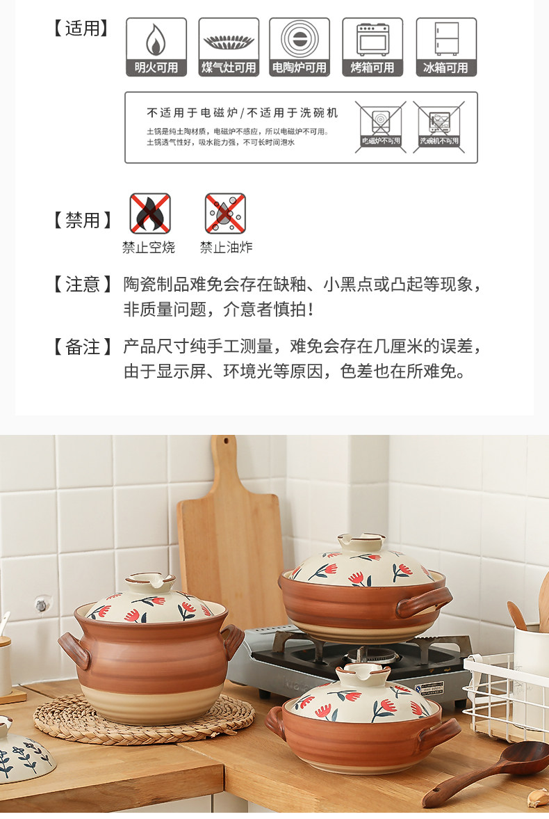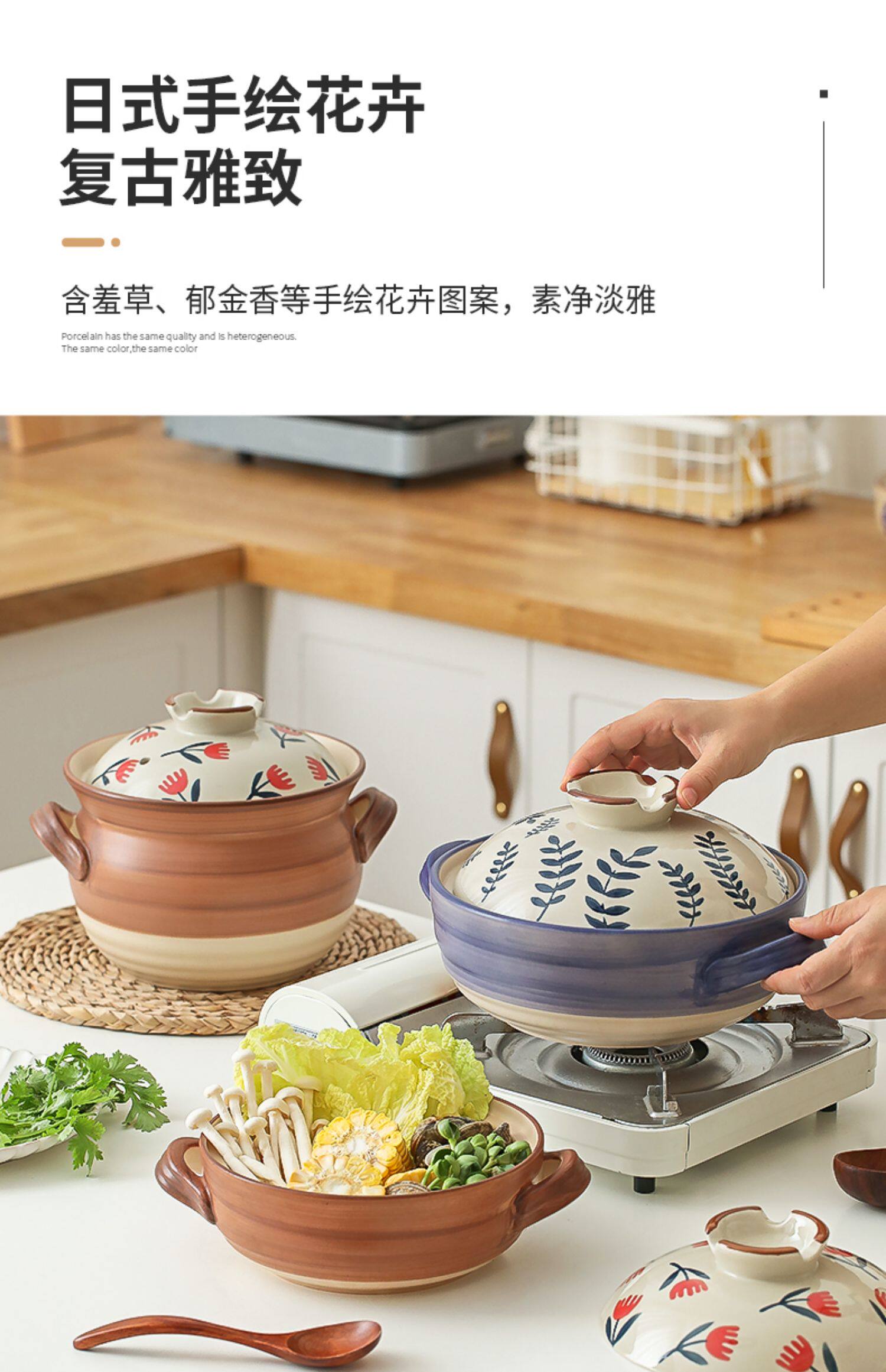 [日式花卉砂锅燃气煤气灶专用耐高温炖锅煲汤家用大沙锅煲仔饭石锅]