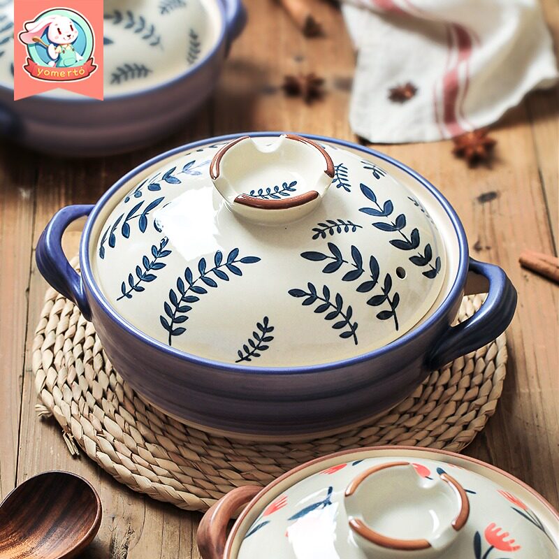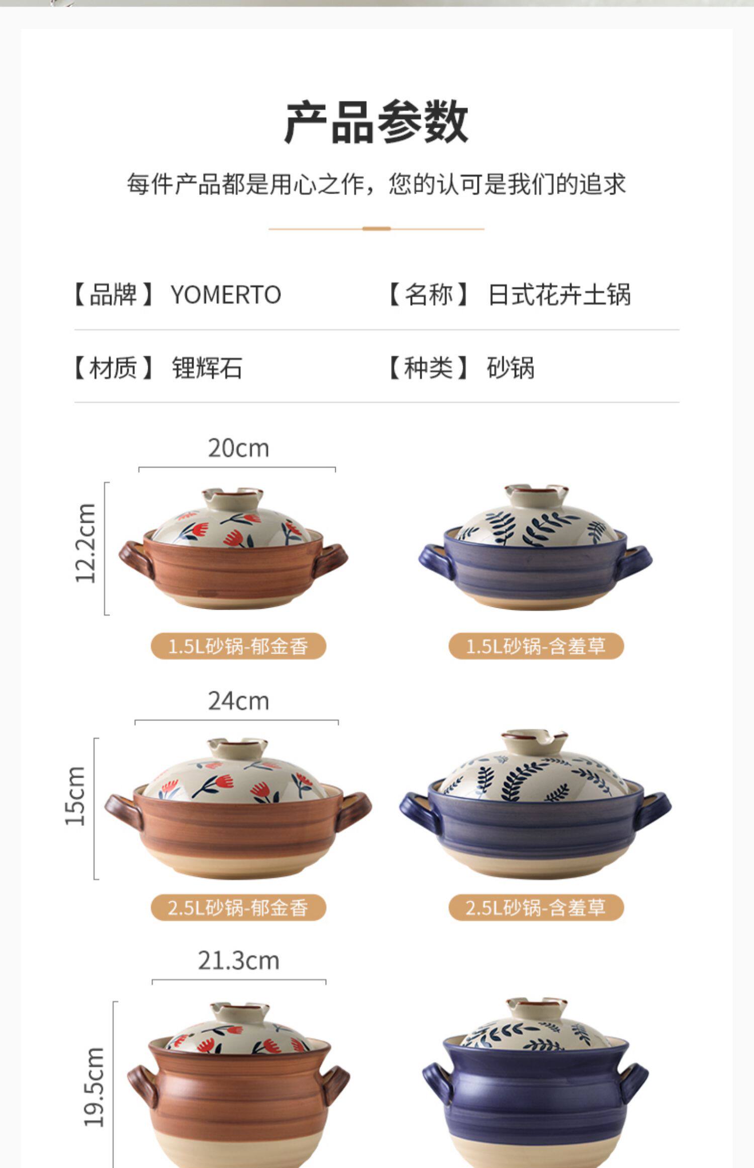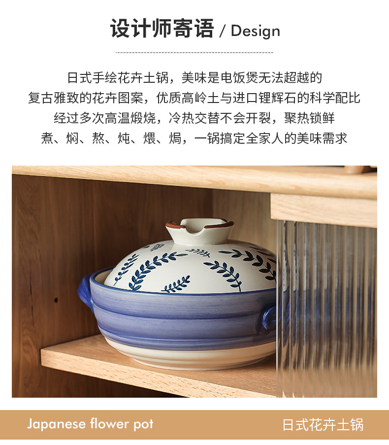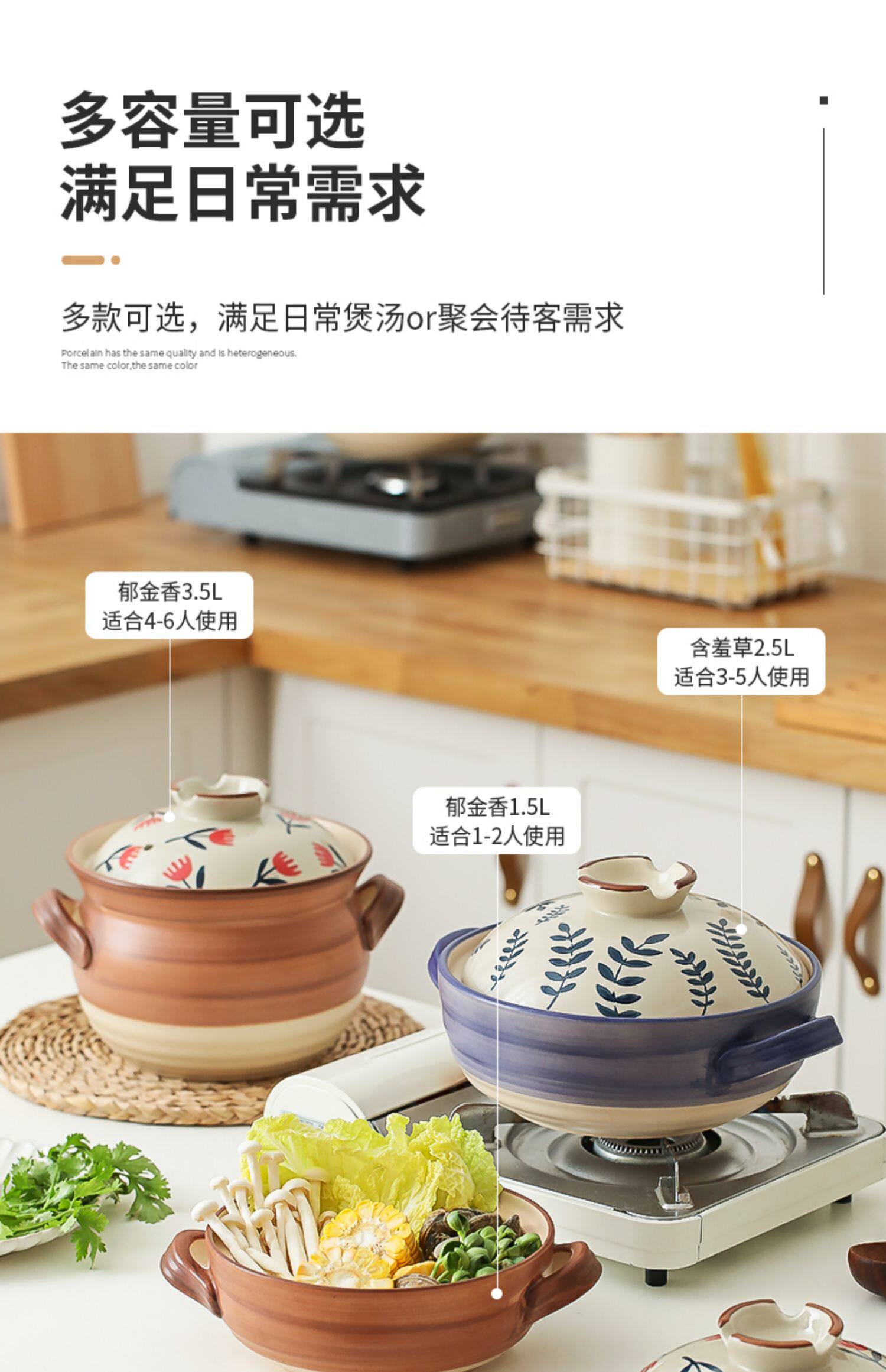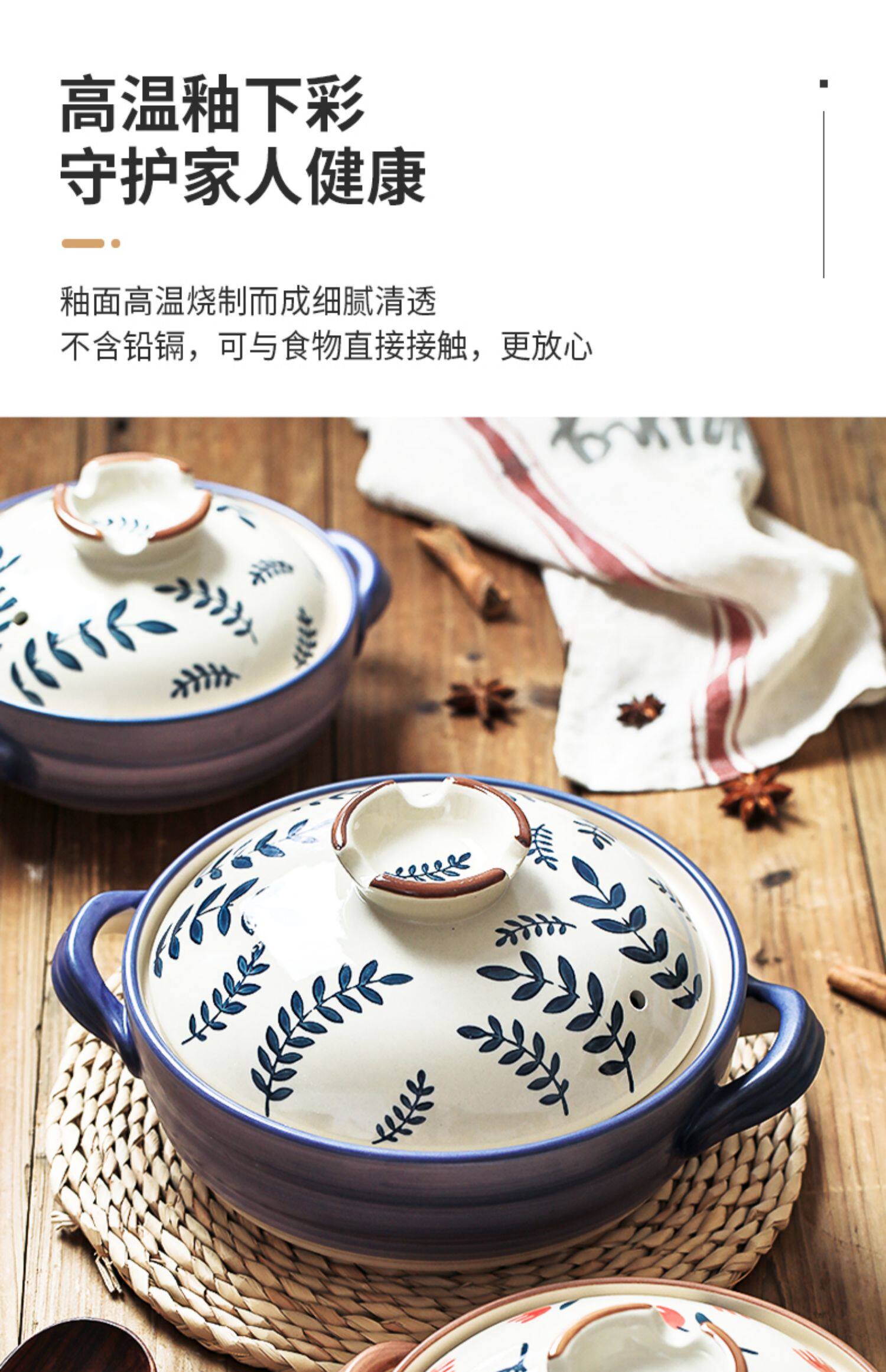 [日式花卉砂锅燃气煤气灶专用耐高温炖锅煲汤家用大沙锅煲仔饭石锅]
