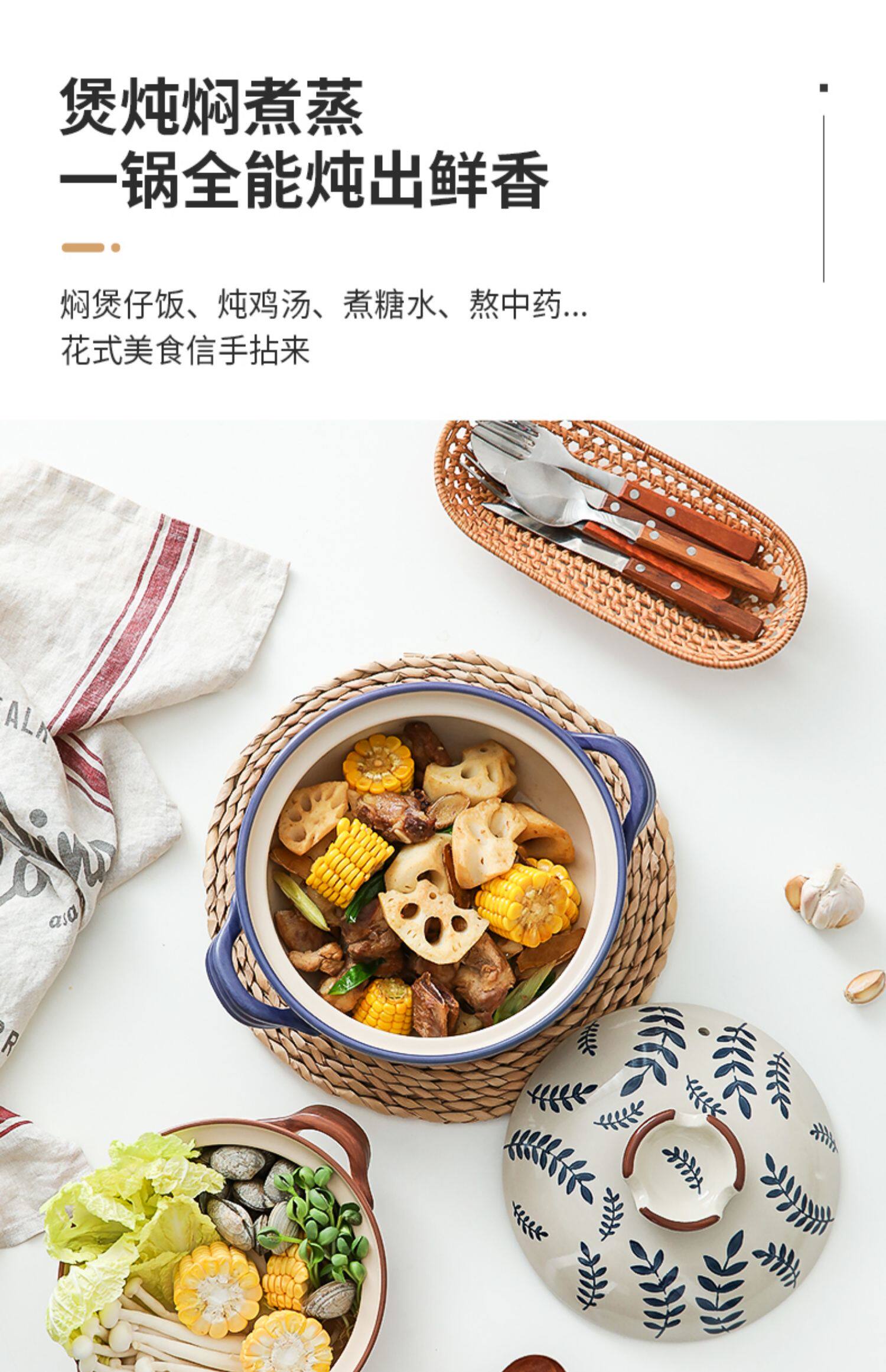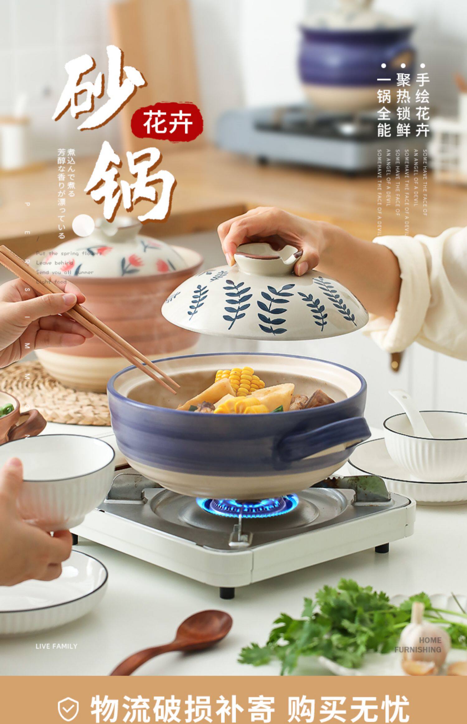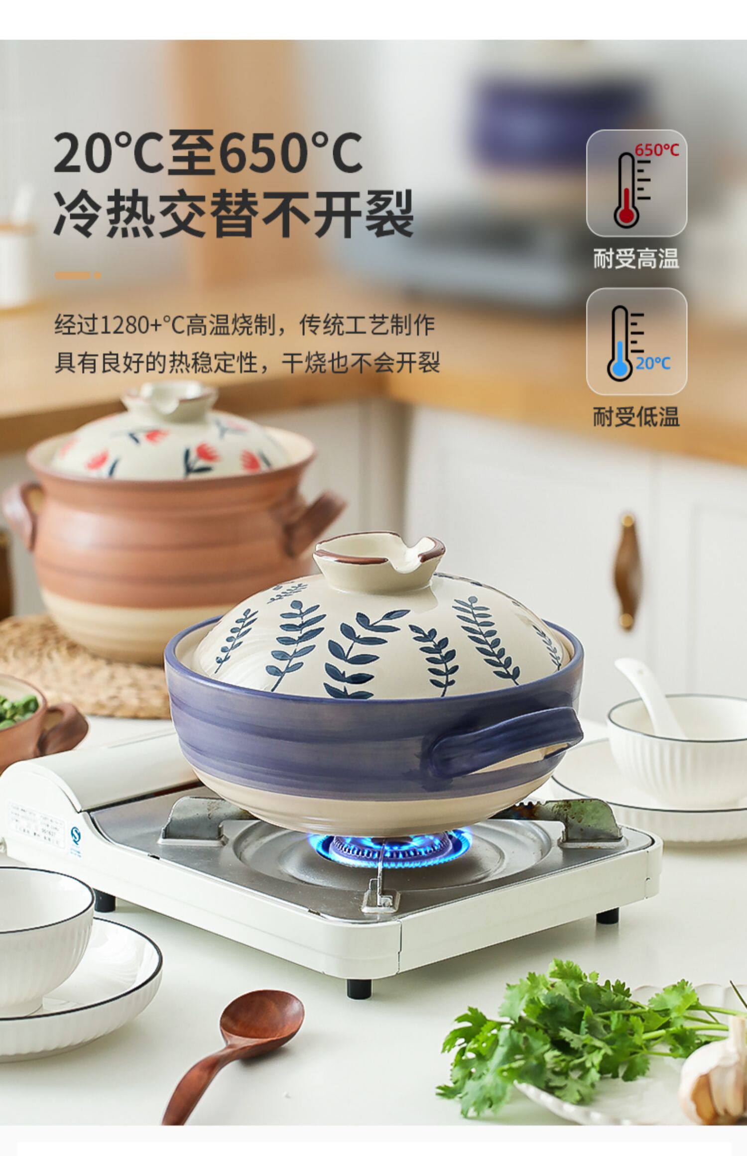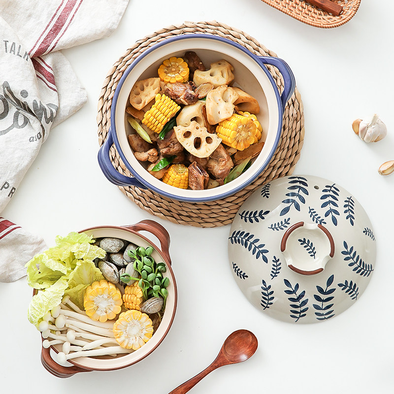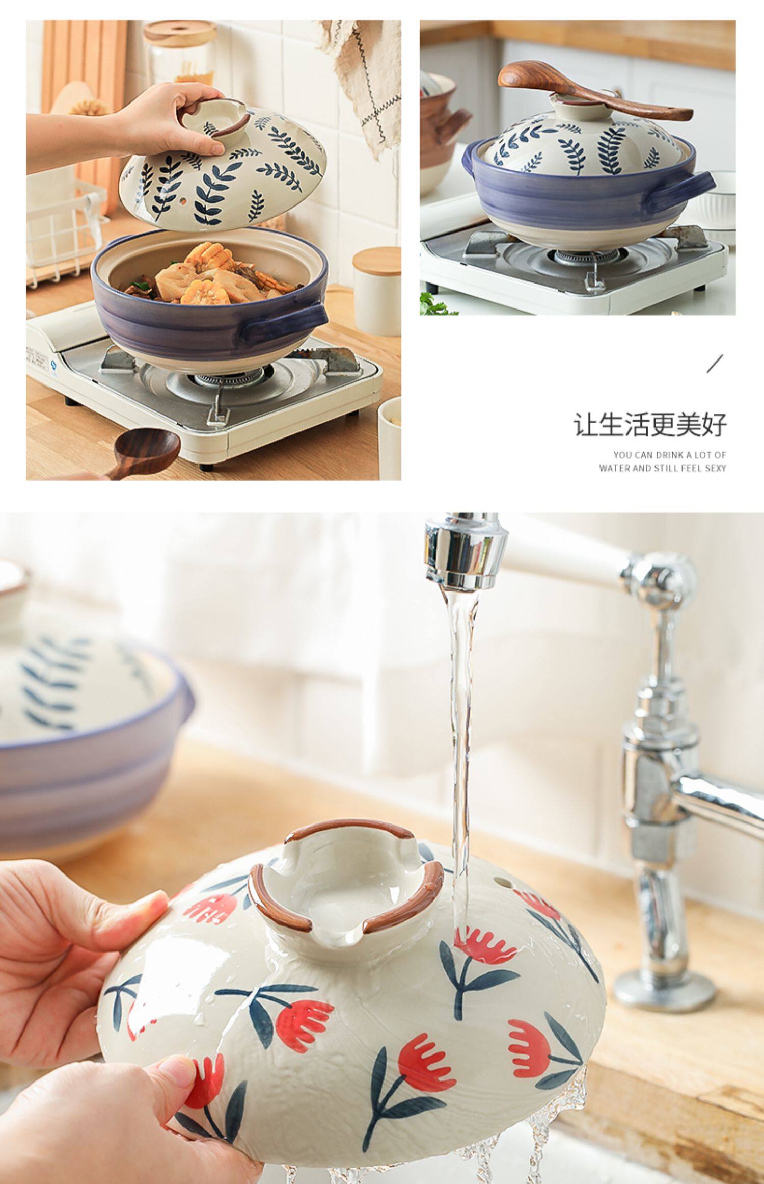 [日式花卉砂锅燃气煤气灶专用耐高温炖锅煲汤家用大沙锅煲仔饭石锅]