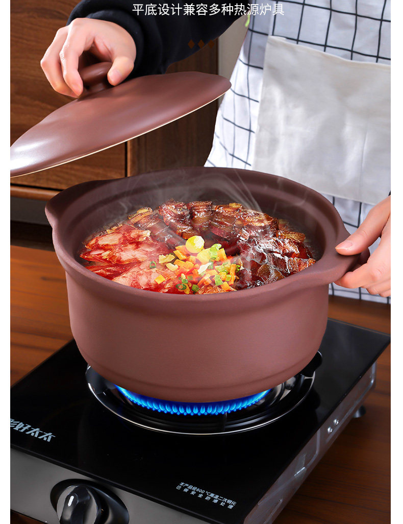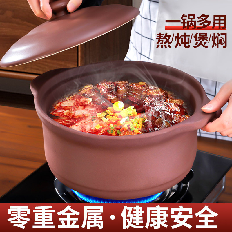Пурпурная глиняная запеканка Домохозяйственное суп тушеное тушеное мясо горшок без запеканки почвы.