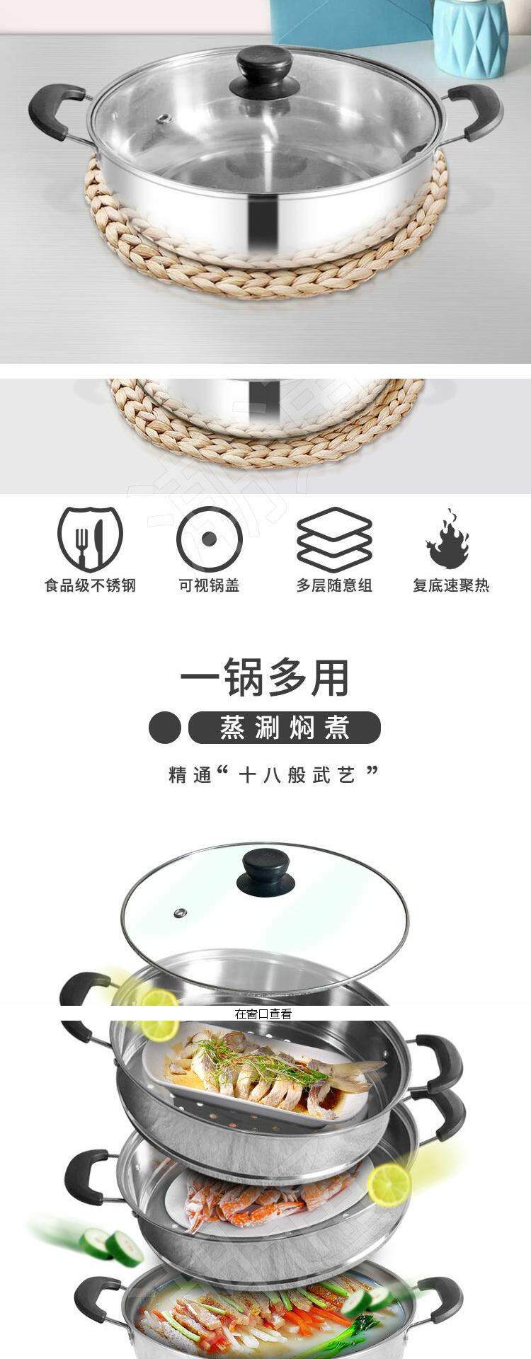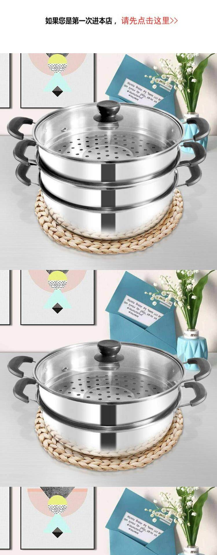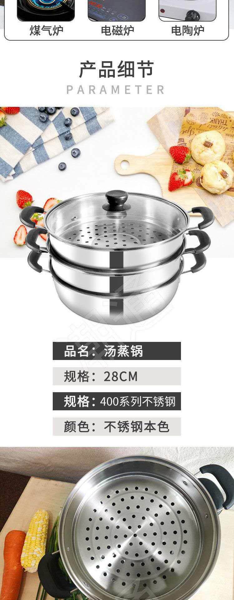 Двойной слой пароход Домохозяйство Три -слоя, многофункциональная многофункциональная многофункциональная суповая кастрюль Электромагнитная плита с высоким суповым подарком