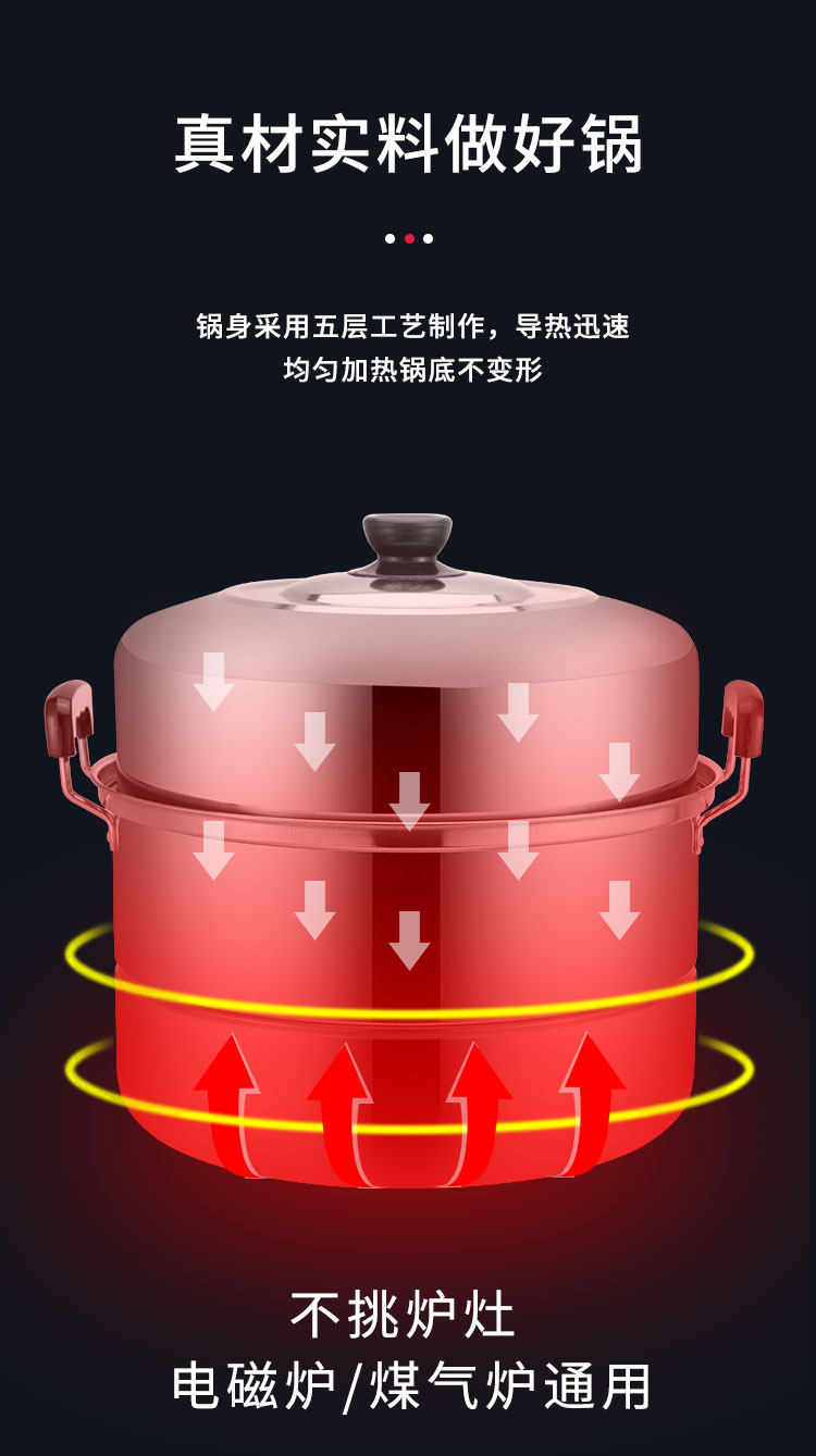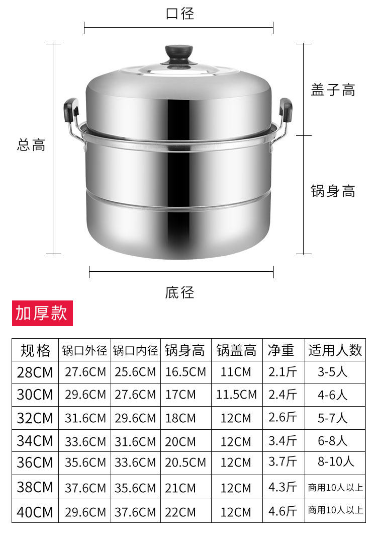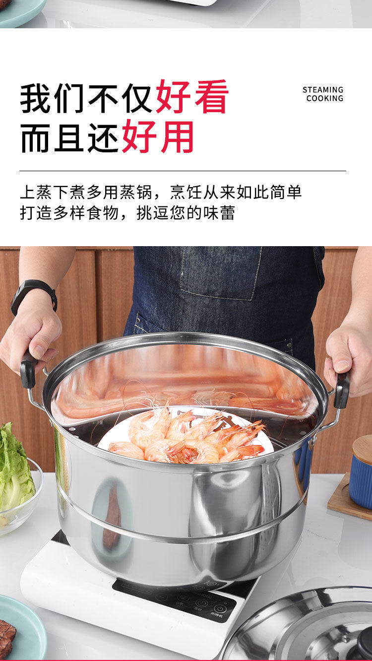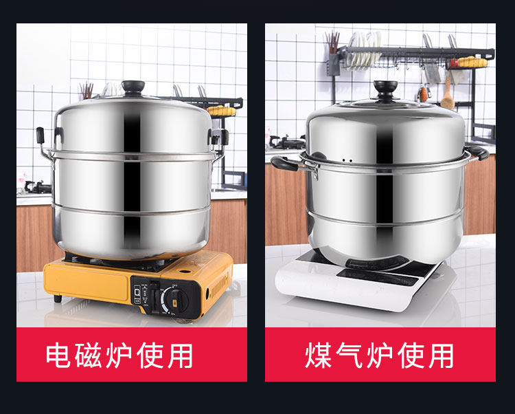 Stainless steel thickened two-layer double-layer steamer household large large-capacity induction cooker gas stove steamed buns steel-bar small pot