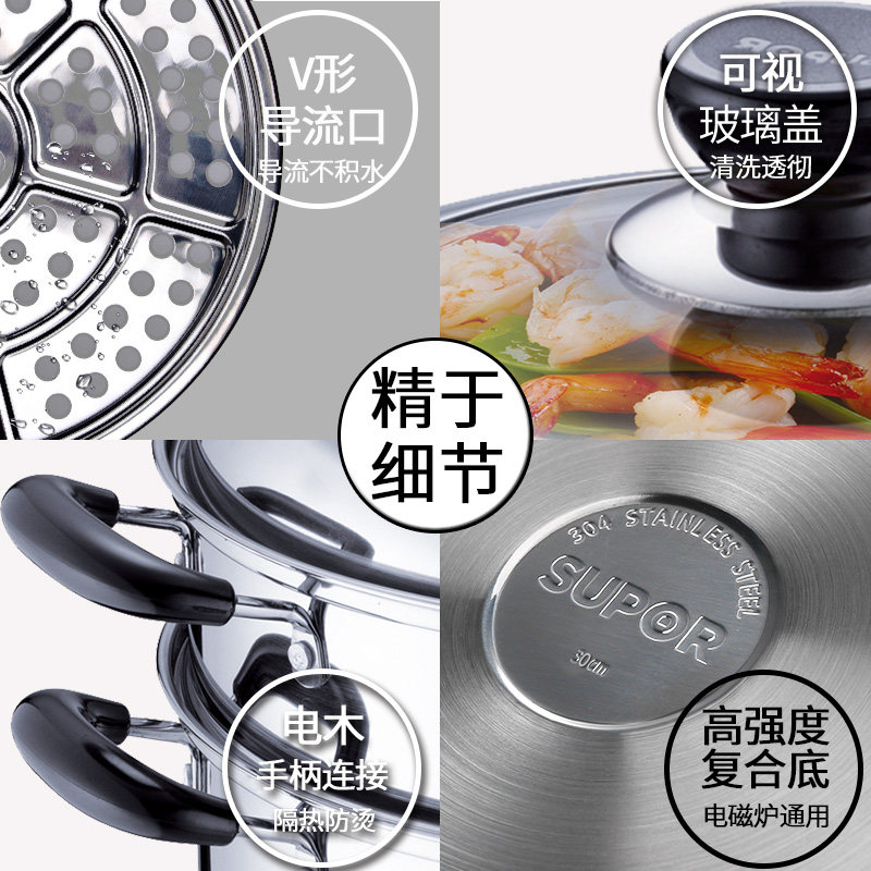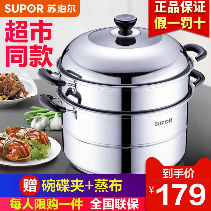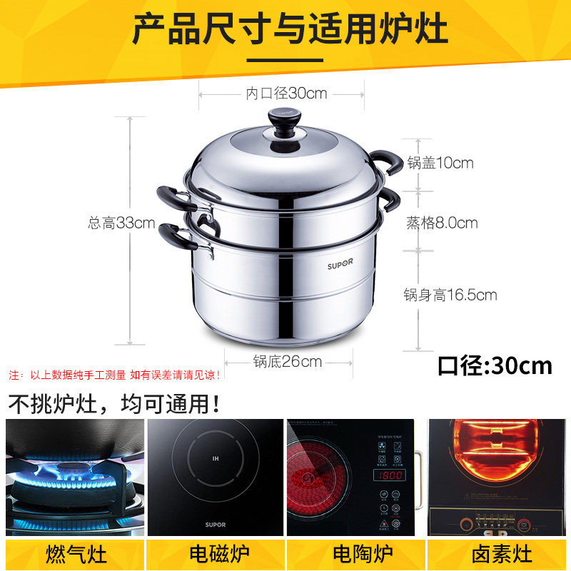 Supor Steamer 16 -Hyear -Sold Shop восемь цветов Supor Steamer 304 из нержавеющей стали 2 большой 3 -слой 28/30/32/34 см.