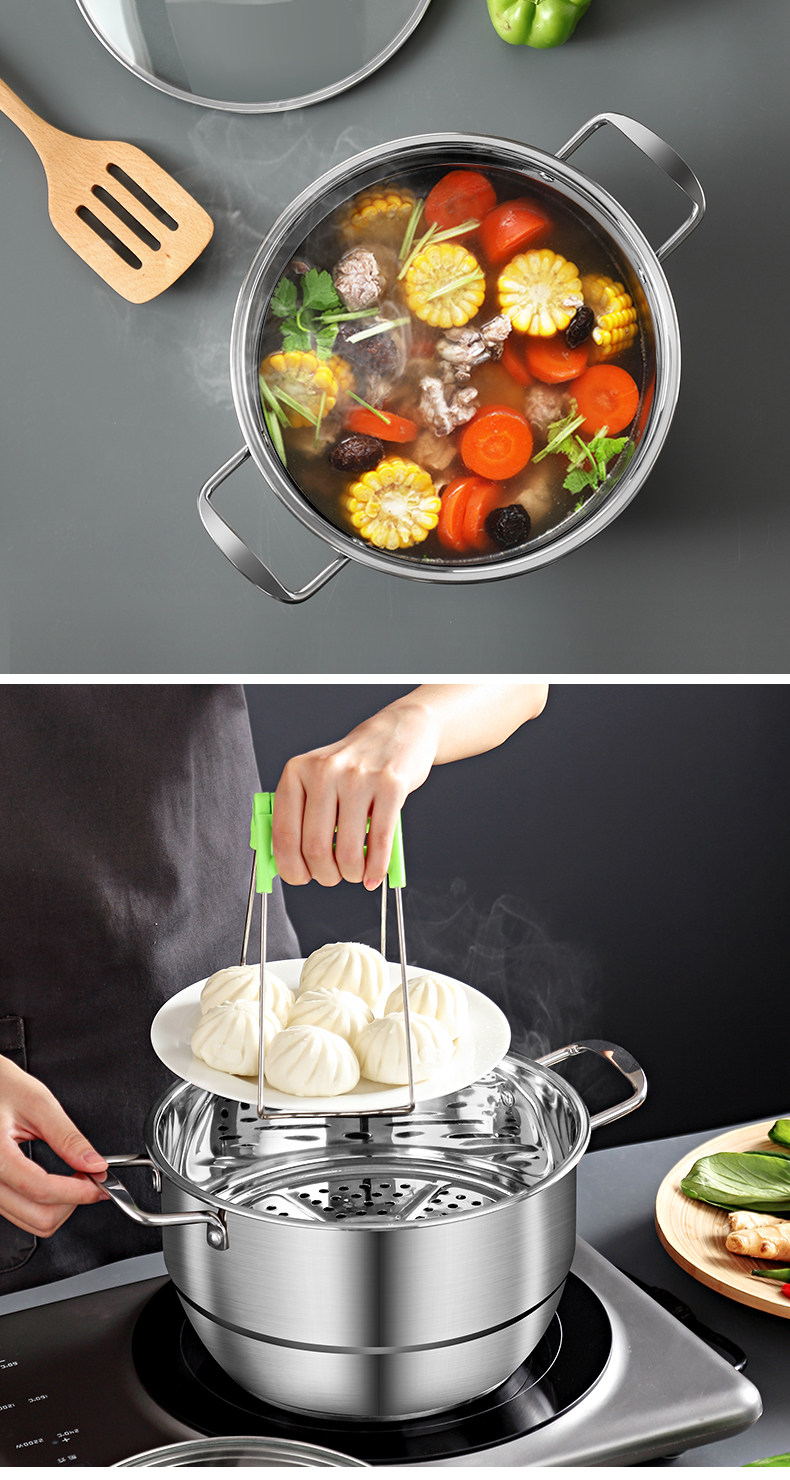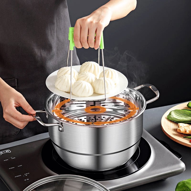 Двухэтажная электромагнитная универсальная пароварка из нержавеющей стали, увеличенная толщина