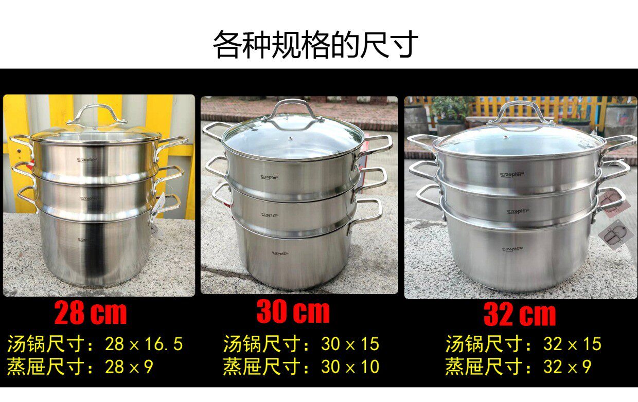 | Цвет: | Три -слойный набор парохода, Оригинальная пароварка с аксессуарами, Оригинальная крышка из закаленного стекла, Суповая кастрюля 30 см без крышки. |
