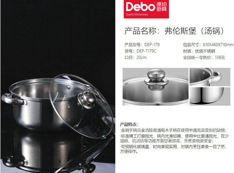 Качество немецкого качества Debin Visual Themed Glass Lid Soup Soup Pot Frolensburg DEP-179 Прозрачная крышка 3L