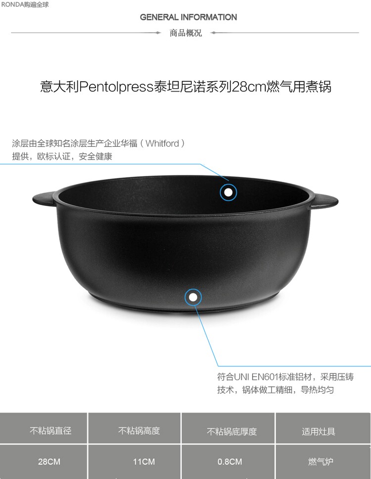 Итальянский импортный пентолпресс не стик горшечный суп -газовой газовой газовый горшок с кастрюль кухонной печи 28 см.