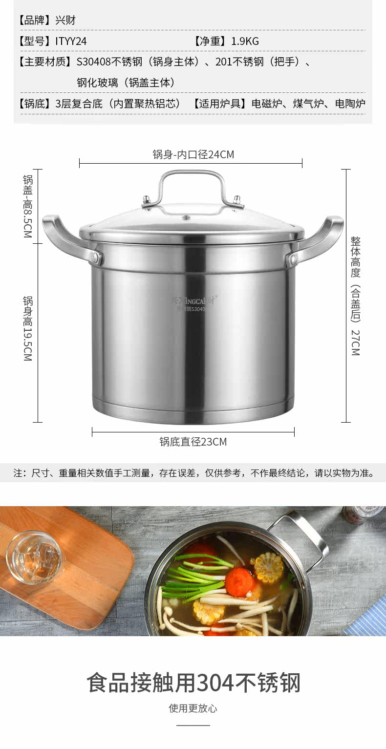 304 Soup Pot Soupe из нержавеющей стали 24 см углубляет углубление и углубление индукционной плиты для получения качества.