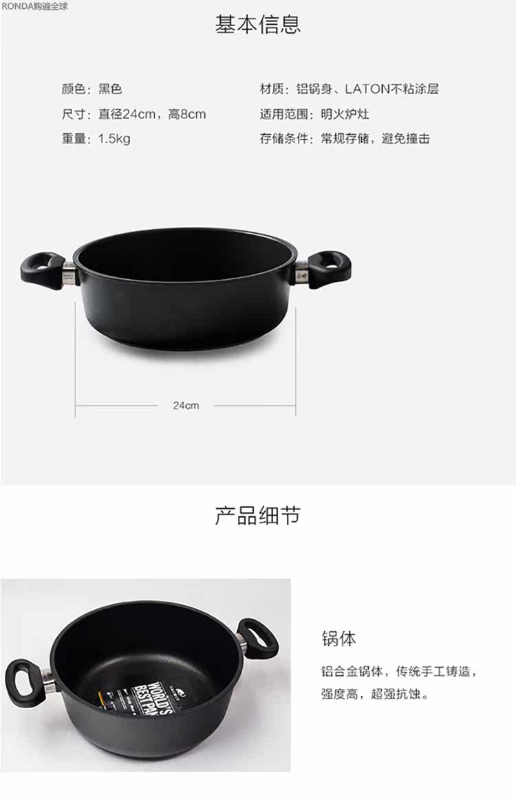 Импортные кухонные горшки и горшки для мамбутов, неприщепленные кастрюли, круглые кастрюли с двойным узом, 24 см/26 см.