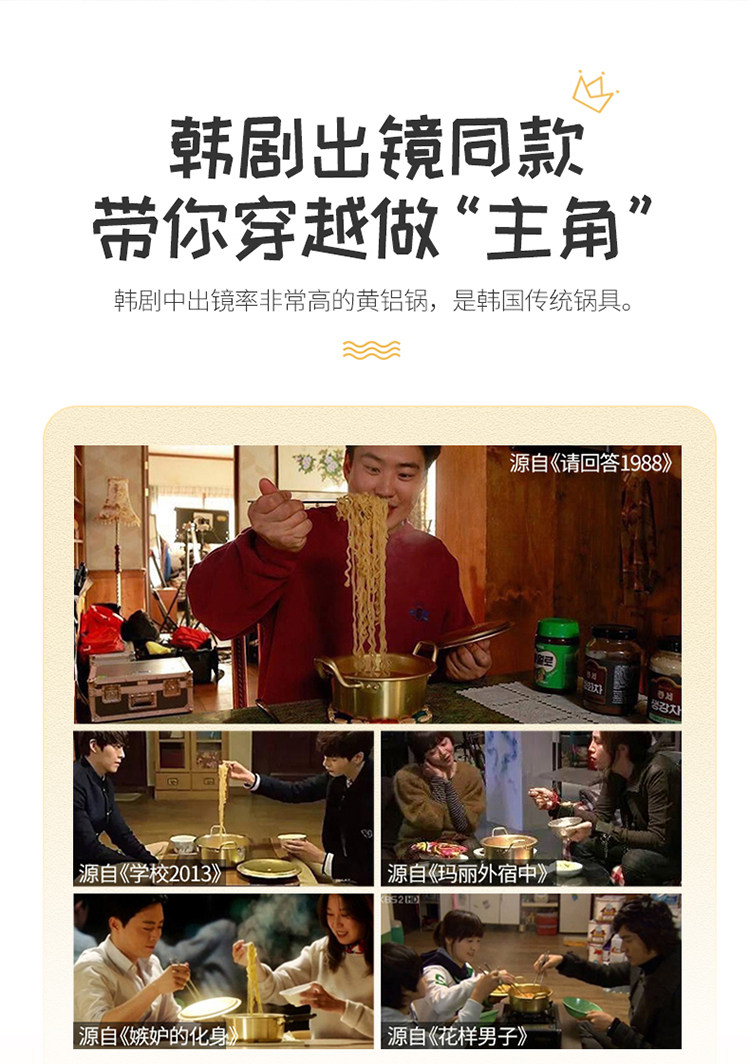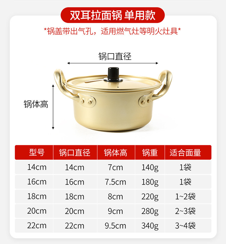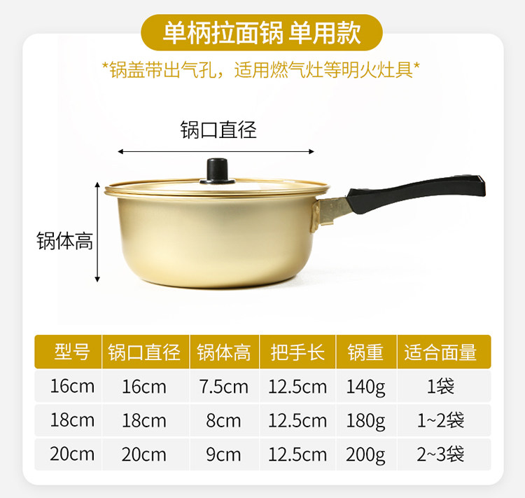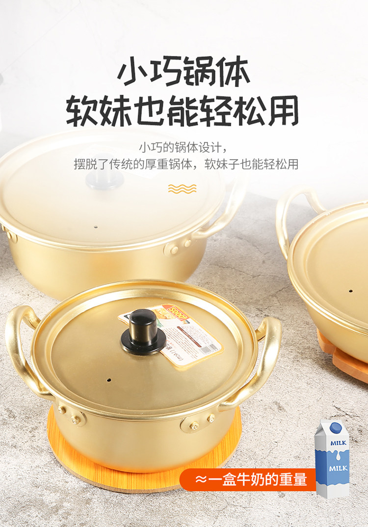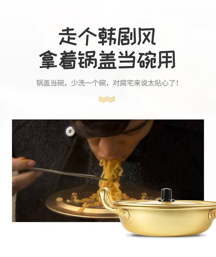 Любовный ветер, корейская мгновенная кастрюль с лапшой, вареный рамэн, желтый алюминиевый горшок корейская корейская драматическая сеть красное маленькое вареное золото может быть введена в индукционную плиту