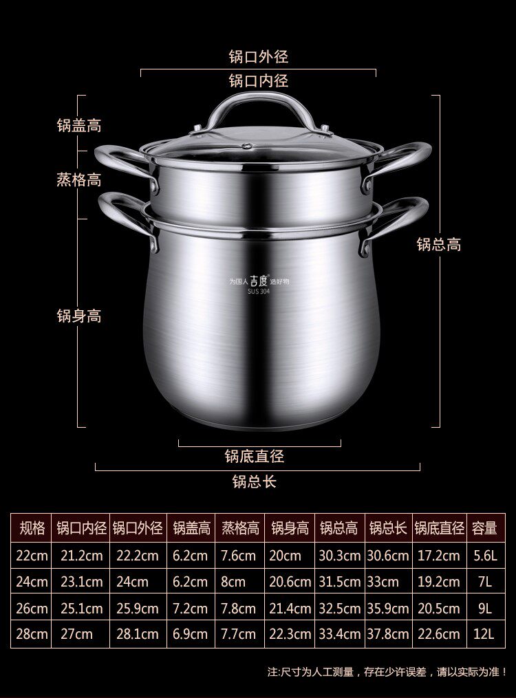 - Наслаждайтесь 304 стальным закусочным суповым горшком 22 см [прямая модель]+пароход
