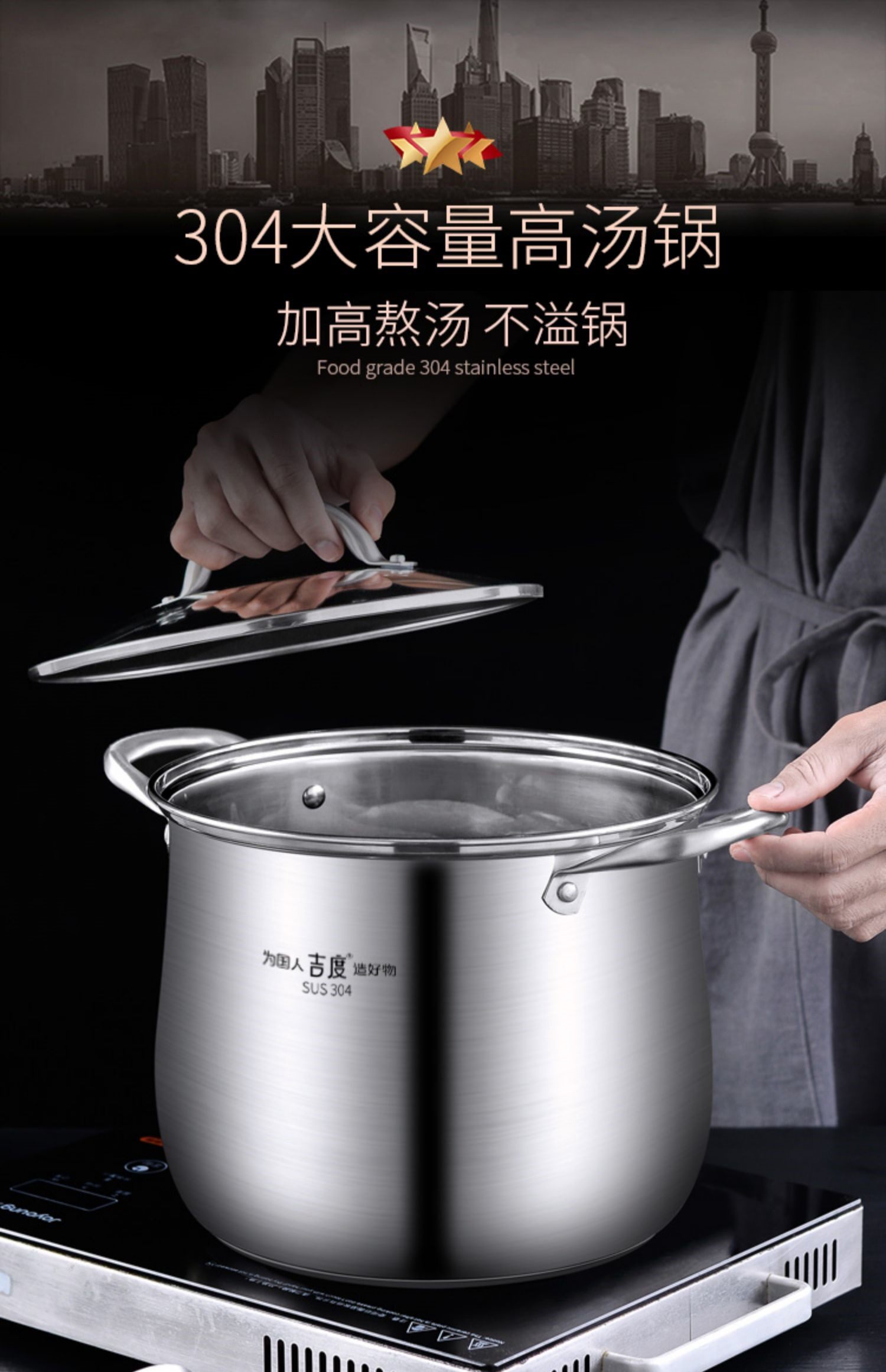 Высокий суп -горшок 304 из нержавеющей стали домохозяйка сгущенной большой суп из вареного кара кара кара.