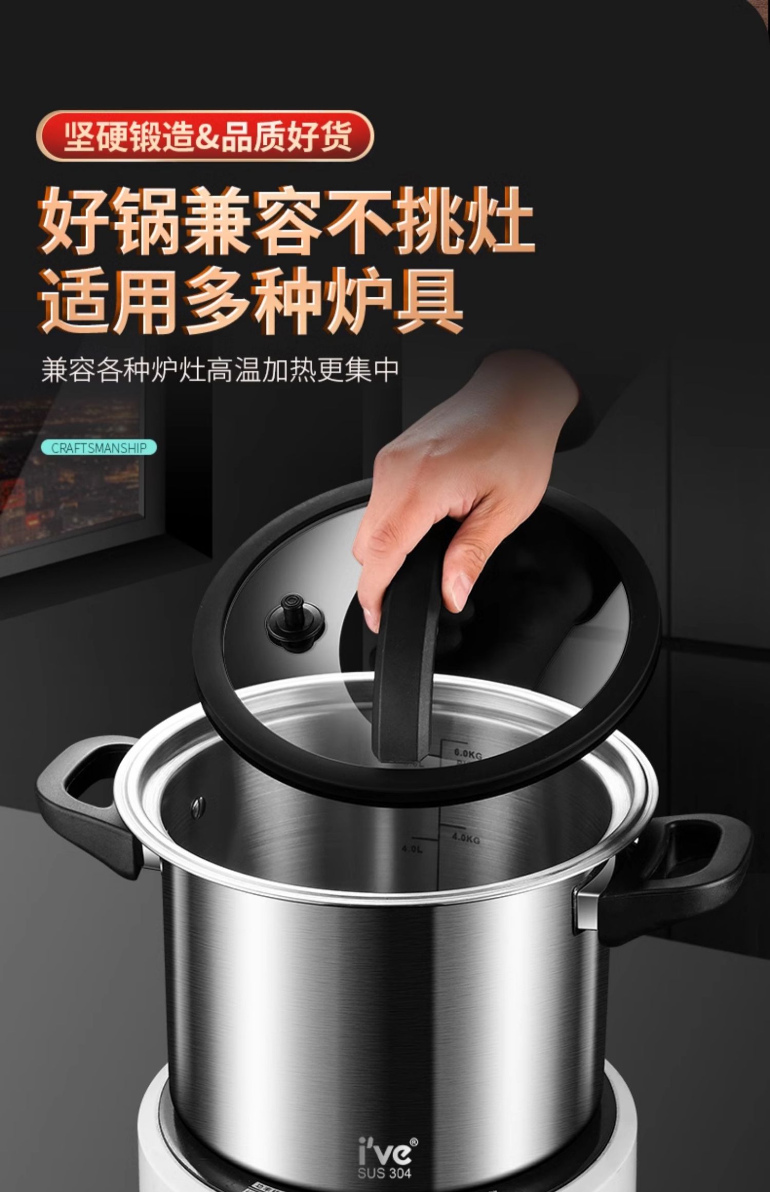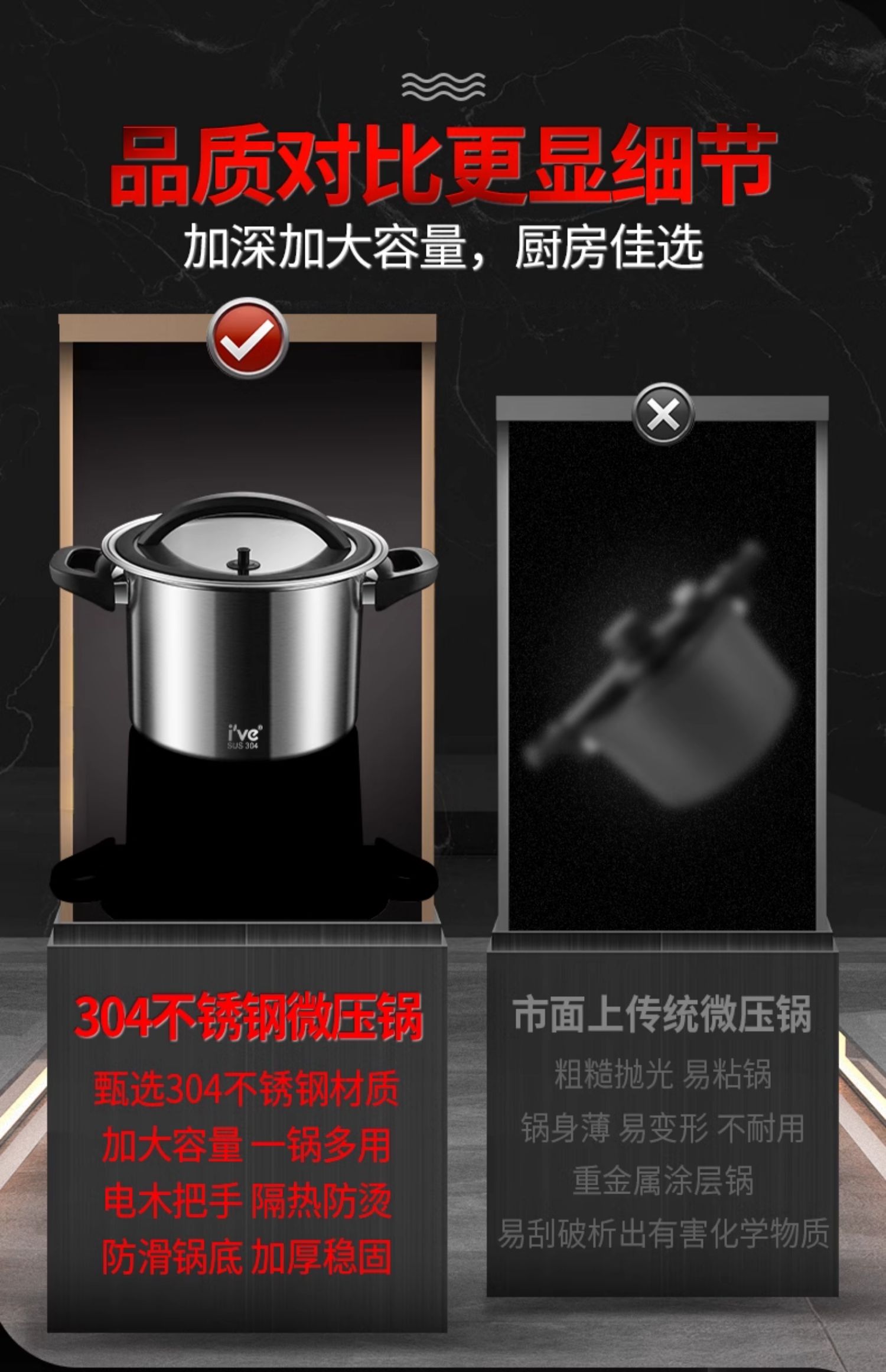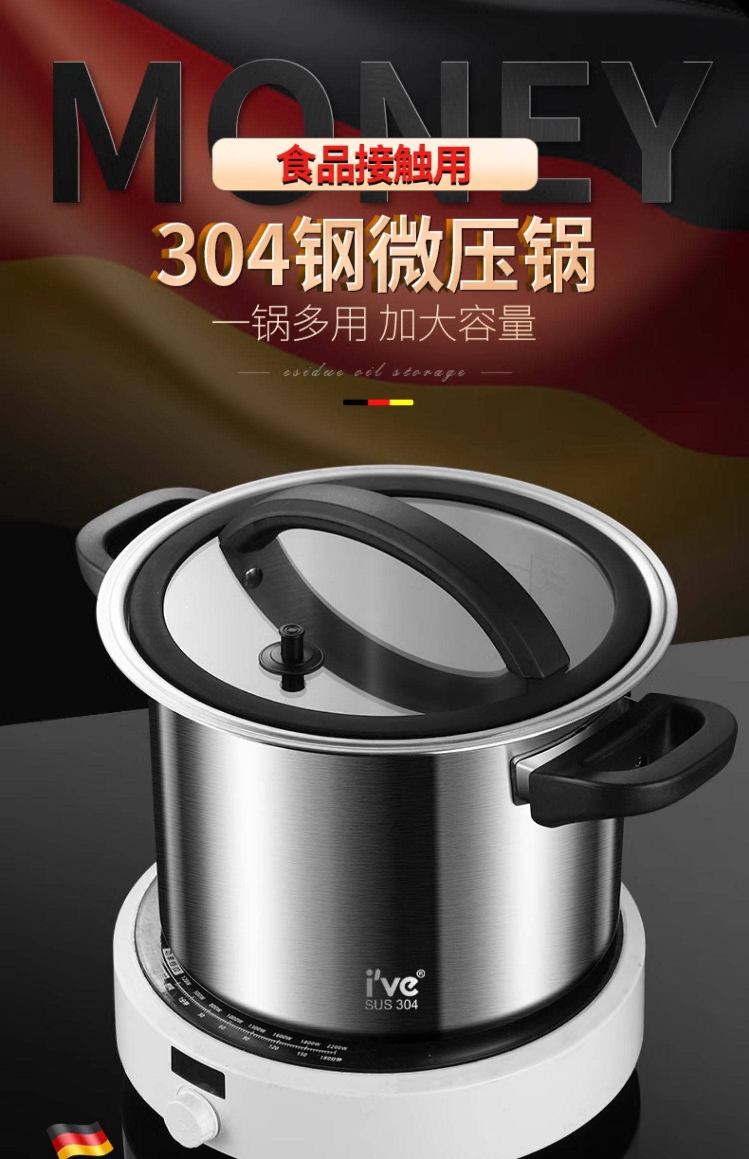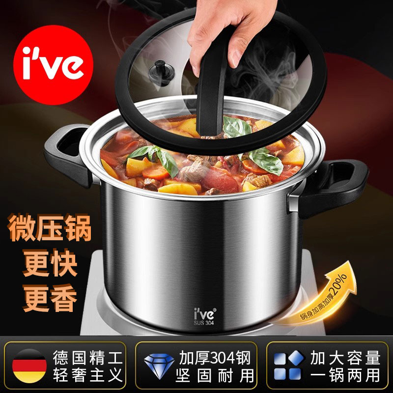 Немецкая микро-скороварка ive, кастрюля для супа, бытовая кастрюля для тушения, утолщенная газовая индукционная плита из нержавеющей стали 304, универсальная большая емкость