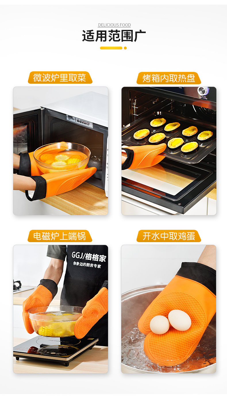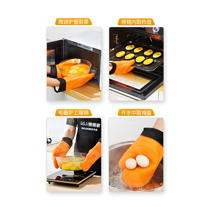 Силиконовые анти -массы перчатки водоладные микроволновые печи плюс хлопчатобумажная термическая изоляционная перчатка, устойчивая к высокотемпературной кухне, профилактика, профилактика с высокой температурой, пять пальцев