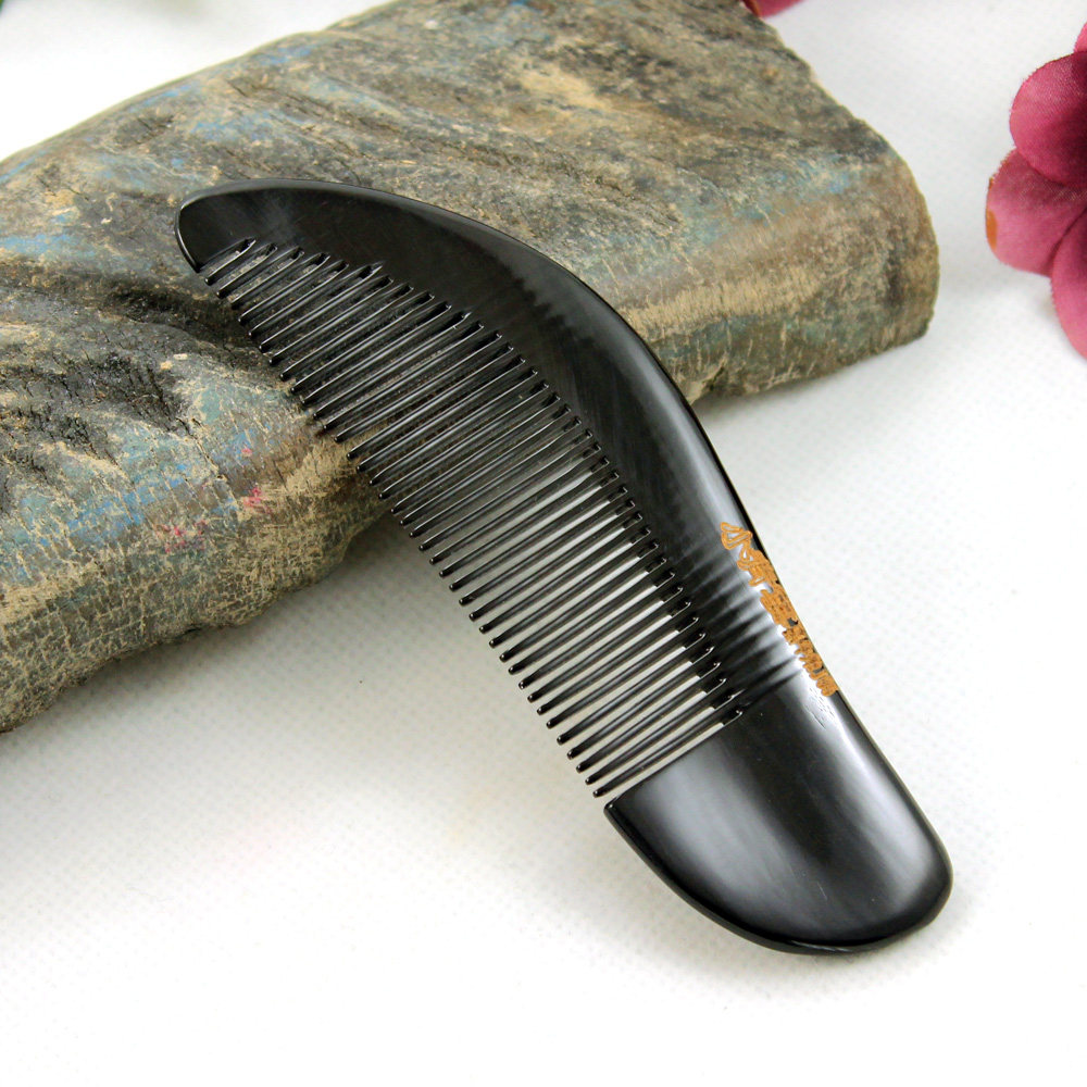 小背篓 Черный буйвол рог -гребня натуральная ручная ручная гребня маленькая и изысканная переноска с собой, чтобы выйти на легкую гравировку