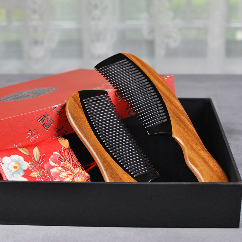 Расческа из зеленого сандала из сандалового дерева, комплект подходит для мужчин и женщин, массажер с гравюрой, подарок на день рождения